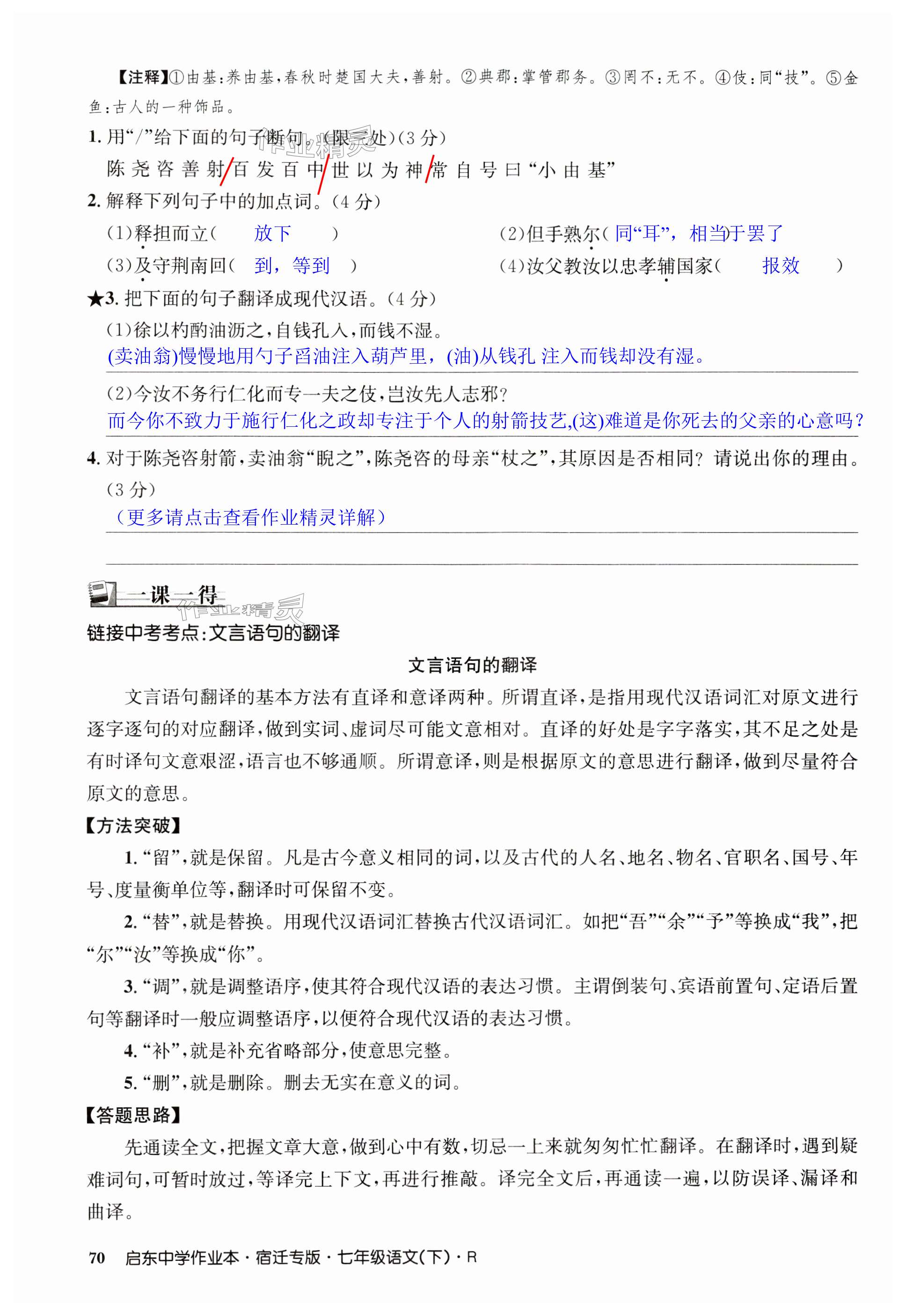 注:目前有些书本章节名称可能整理的还不是很完善,但都是按照顺序排列的,请同学们按照顺序仔细查找。练习册 2024年启东中学作业本七年级语文下册人教版宿迁专版 答案主要是用来给同学们做完题方便对答案用的,请勿直接抄袭。