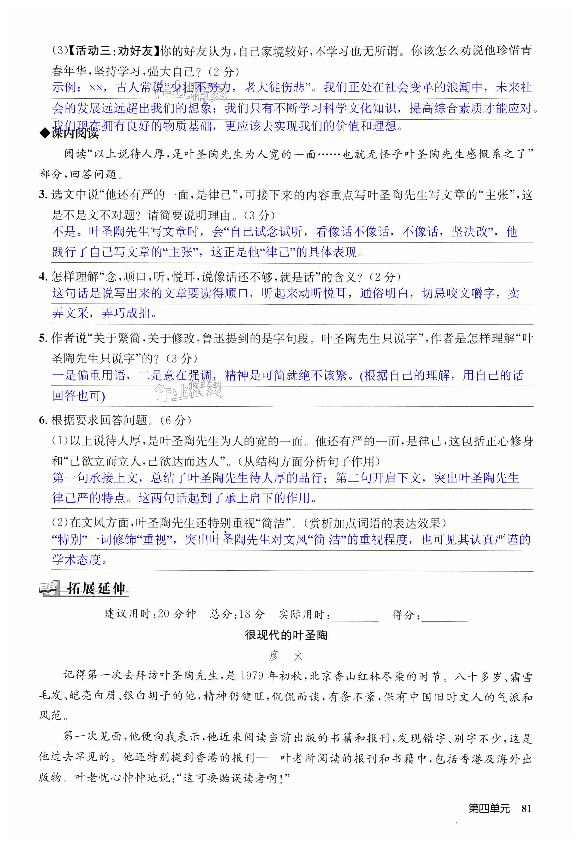 注:目前有些书本章节名称可能整理的还不是很完善,但都是按照顺序排列的,请同学们按照顺序仔细查找。练习册 2024年启东中学作业本七年级语文下册人教版宿迁专版 答案主要是用来给同学们做完题方便对答案用的,请勿直接抄袭。