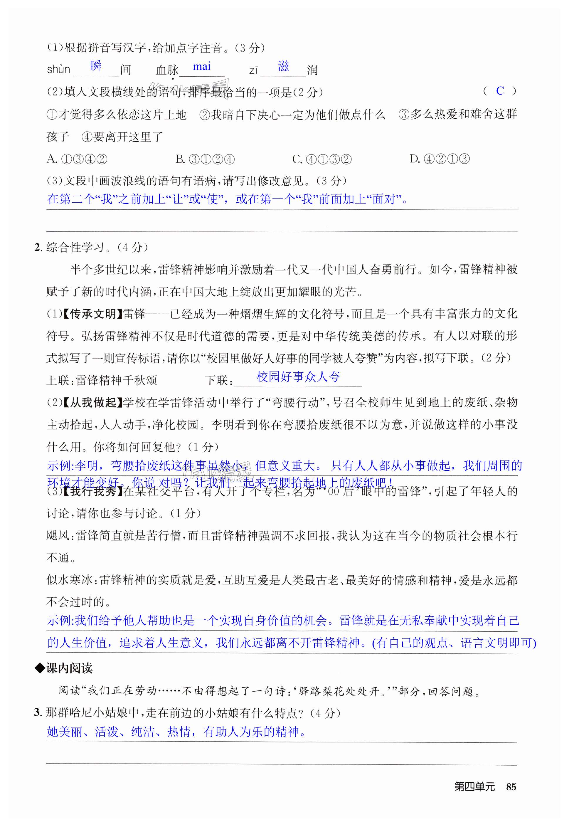 注:目前有些书本章节名称可能整理的还不是很完善,但都是按照顺序排列的,请同学们按照顺序仔细查找。练习册 2024年启东中学作业本七年级语文下册人教版宿迁专版 答案主要是用来给同学们做完题方便对答案用的,请勿直接抄袭。