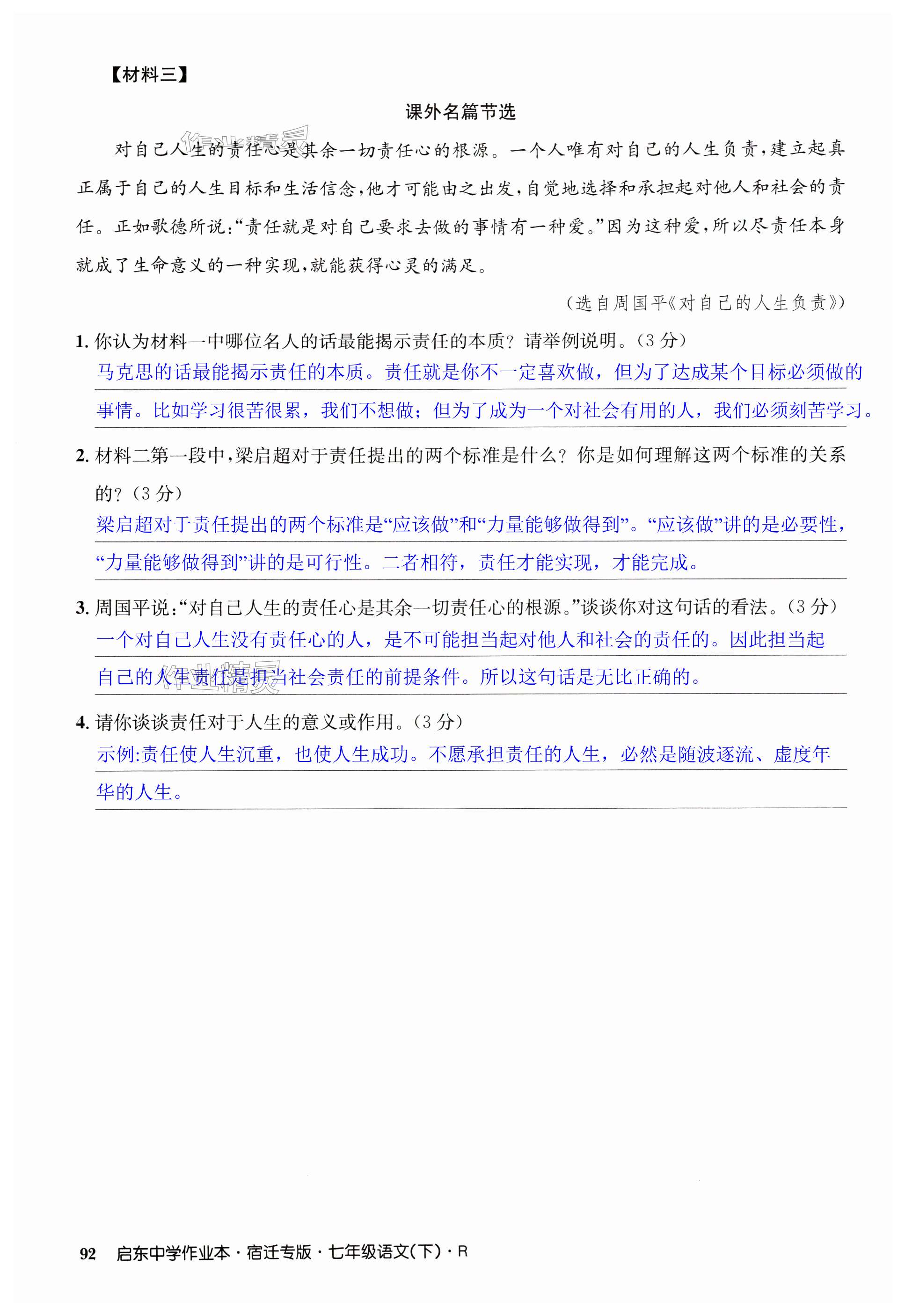 《2024年启东中学作业本七年级语文下册人教版宿迁专版》