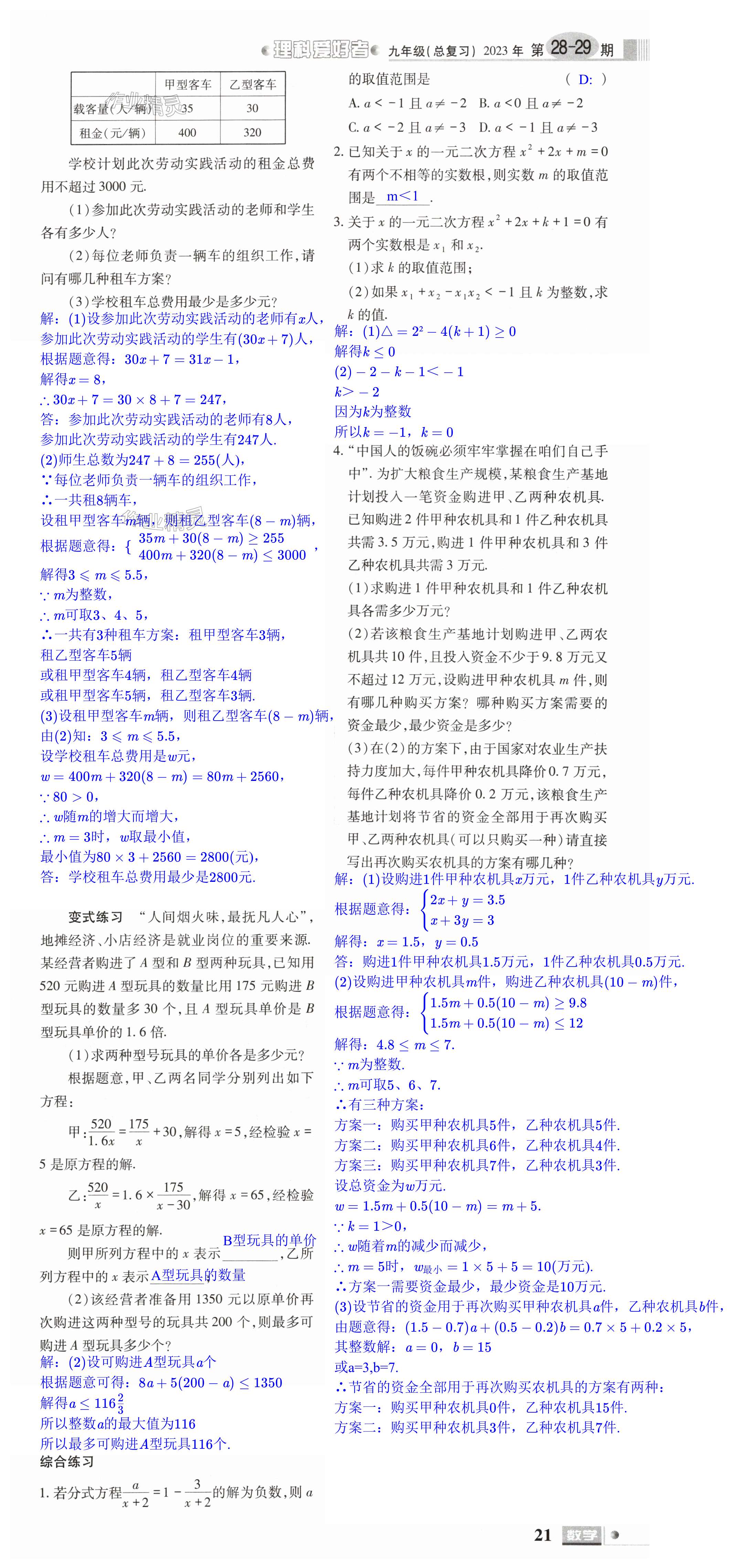 2024年理科爱好者中考总复习数学北师大版第28-29期