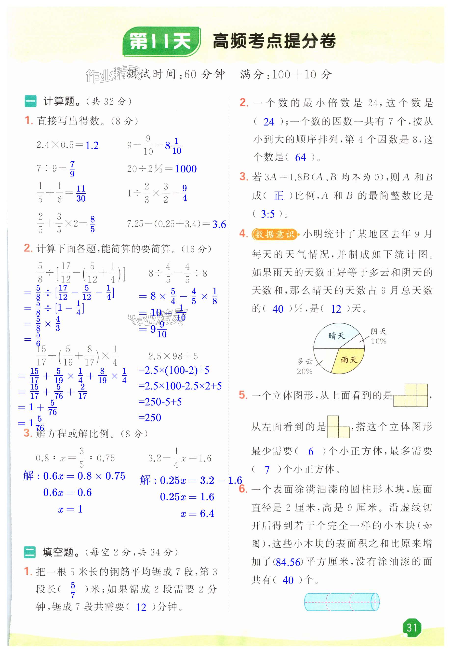 2024年亮点给力全优练霸六年级数学下册苏教版