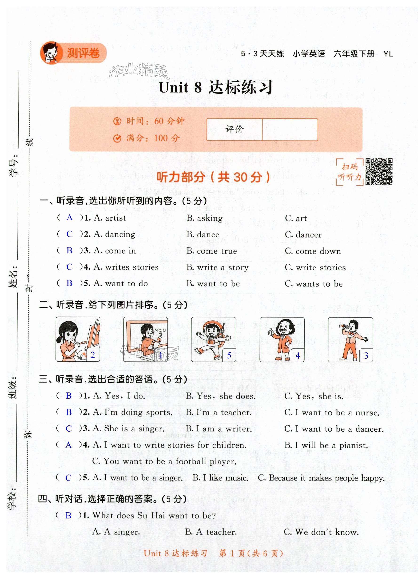 注:目前有些书本章节名称可能整理的还不是很完善,但都是按照顺序排列的,请同学们按照顺序仔细查找。练习册 2024年53天天练六年级英语下册译林版 答案主要是用来给同学们做完题方便对答案用的,请勿直接抄袭。