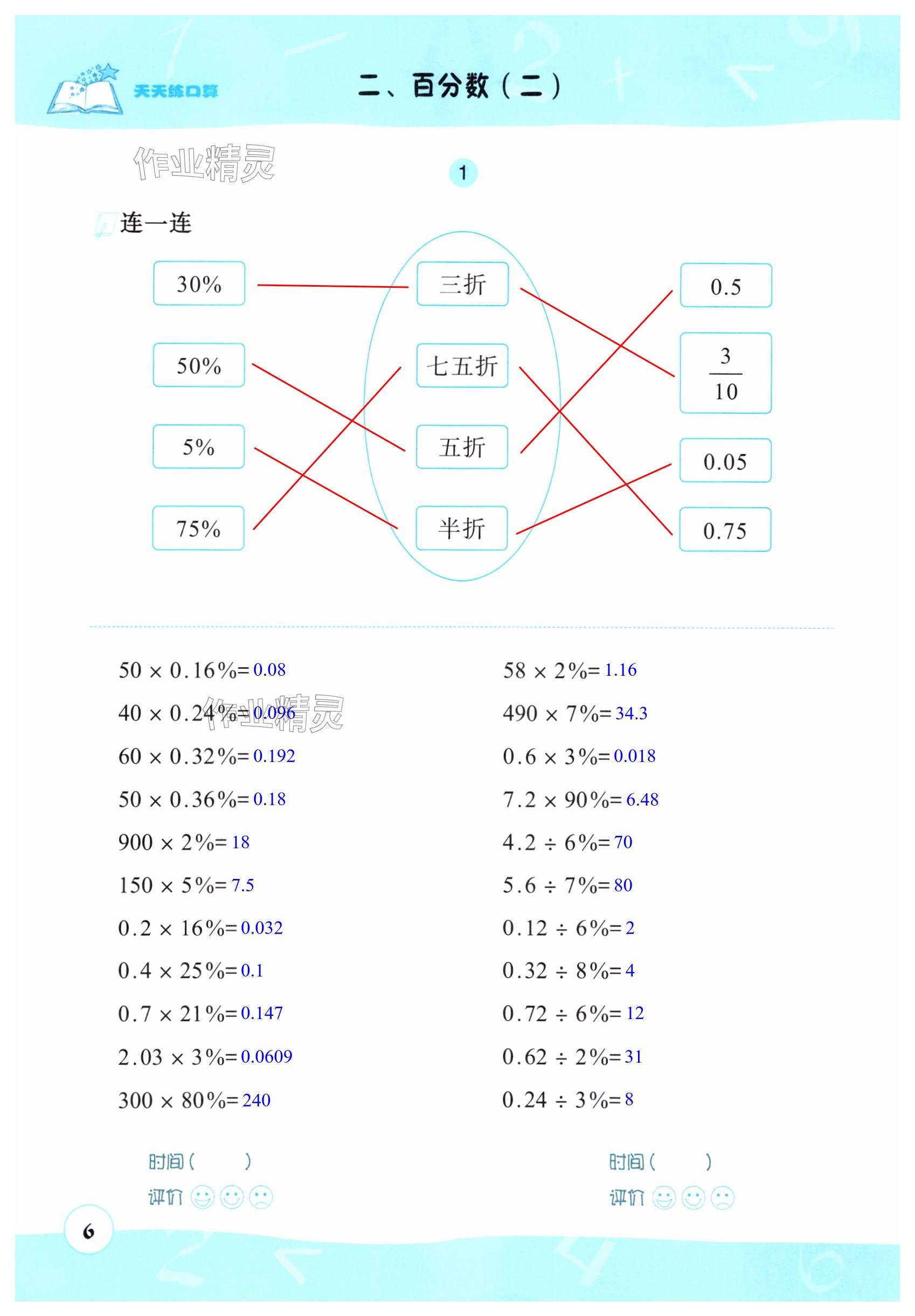 2024年天天练口算六年级数学下册人教版