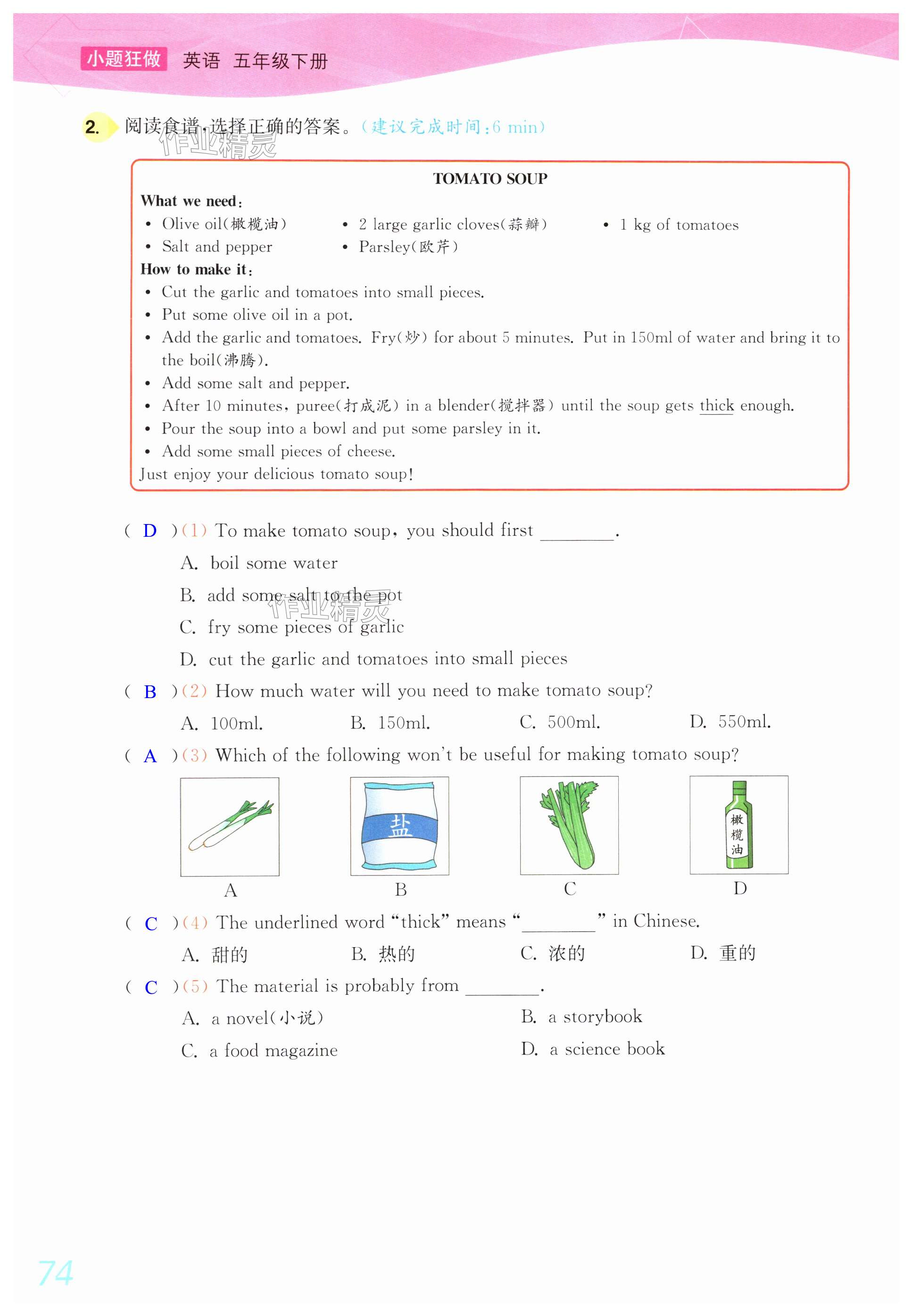 注:目前有些书本章节名称可能整理的还不是很完善,但都是按照顺序排列的,请同学们按照顺序仔细查找。练习册 2024年小题狂做培优作业本五年级英语下册译林版 答案主要是用来给同学们做完题方便对答案用的,请勿直接抄袭。