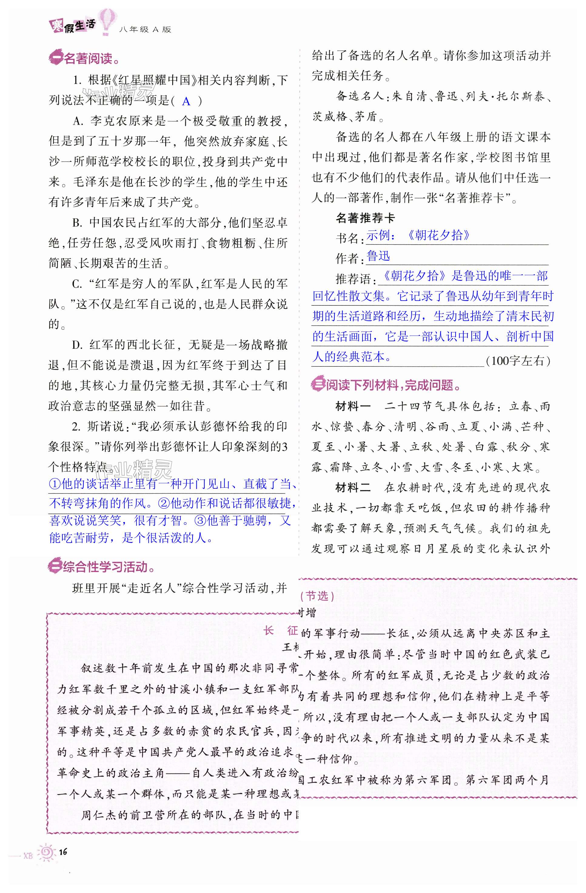 注:目前有些书本章节名称可能整理的还不是很完善,但都是按照顺序排列的,请同学们按照顺序仔细查找。练习册 2024年寒假生活八年级A版重庆出版社 答案主要是用来给同学们做完题方便对答案用的,请勿直接抄袭。