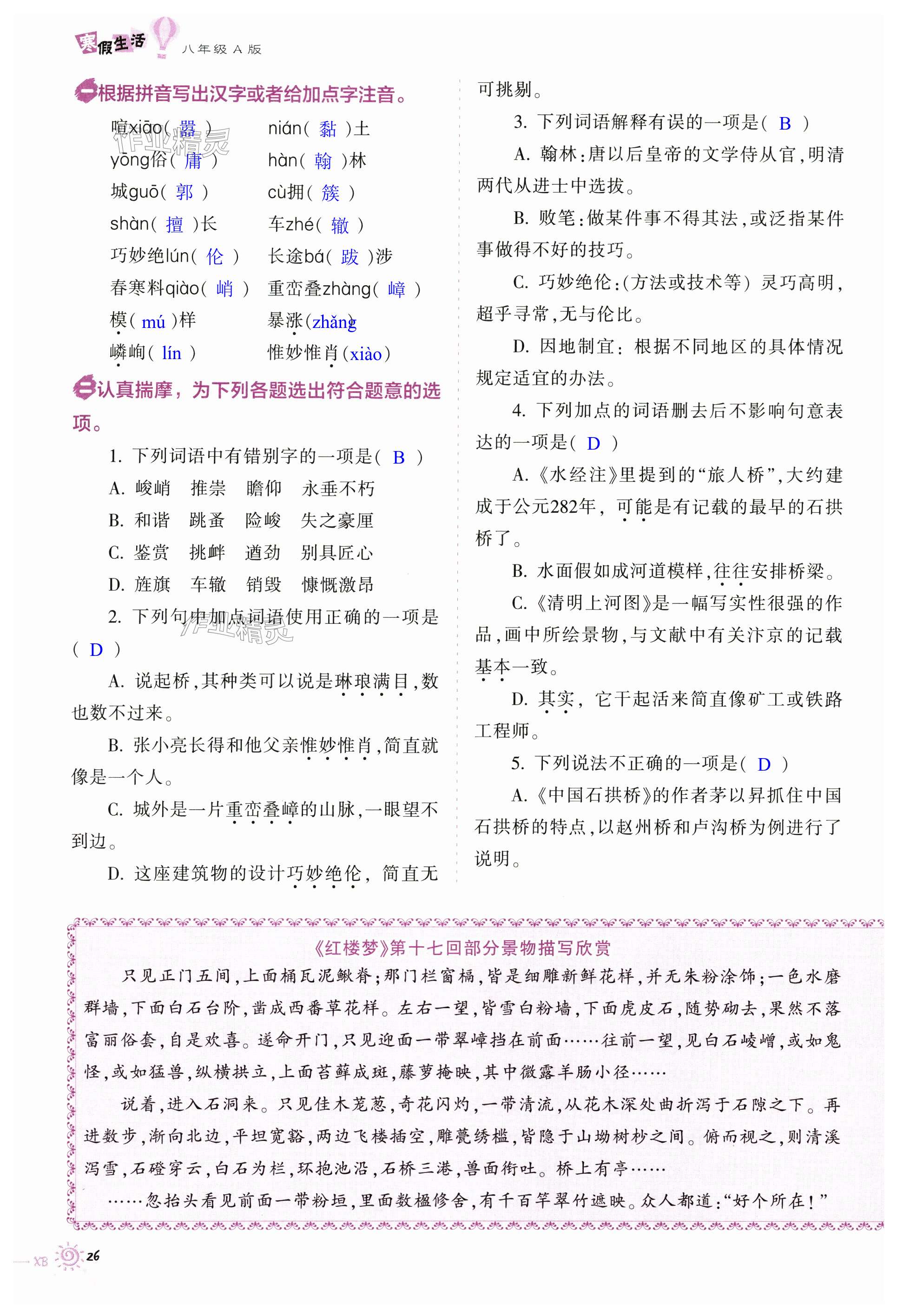 注:目前有些书本章节名称可能整理的还不是很完善,但都是按照顺序排列的,请同学们按照顺序仔细查找。练习册 2024年寒假生活八年级A版重庆出版社 答案主要是用来给同学们做完题方便对答案用的,请勿直接抄袭。