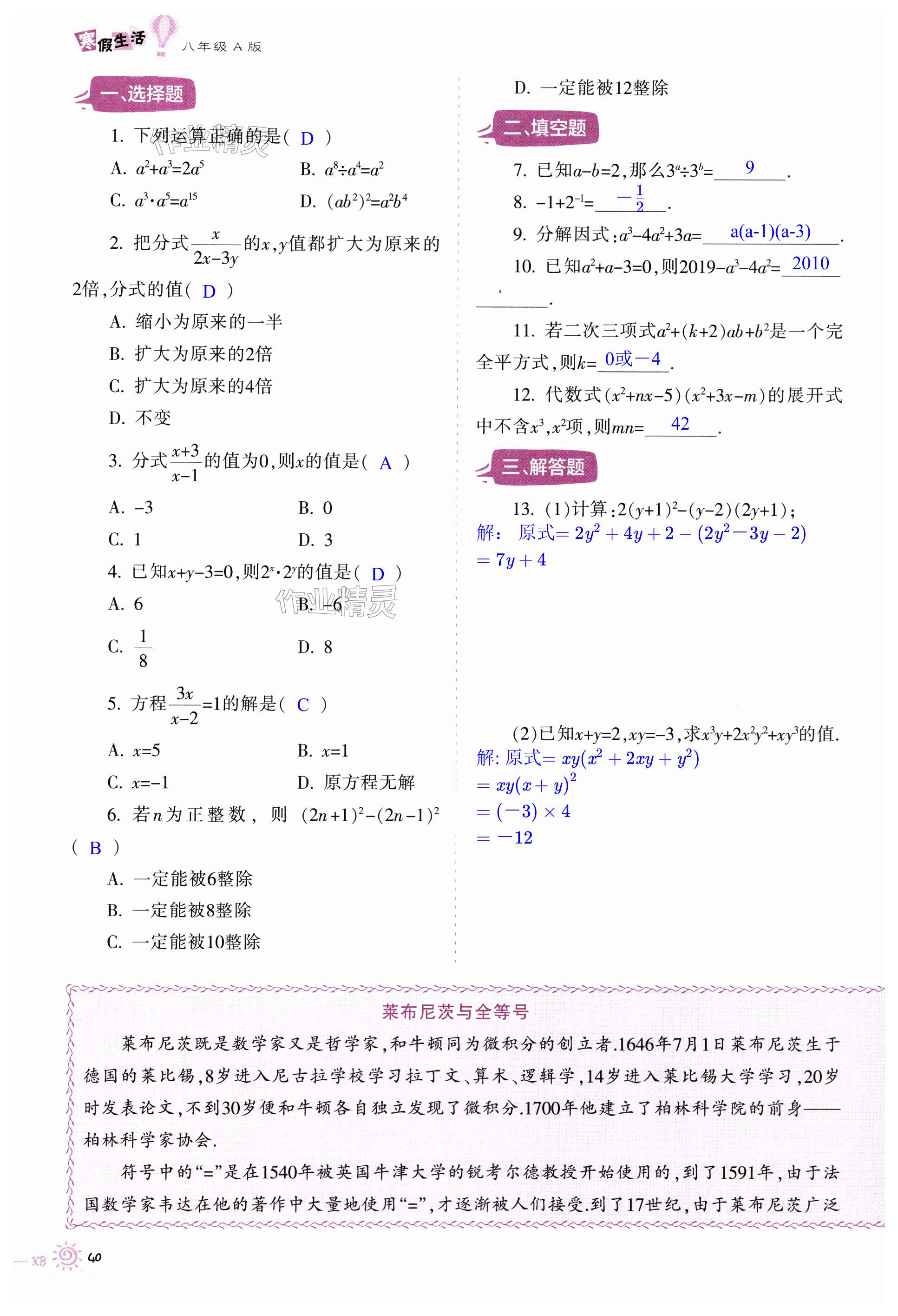 注:目前有些书本章节名称可能整理的还不是很完善,但都是按照顺序排列的,请同学们按照顺序仔细查找。练习册 2024年寒假生活八年级A版重庆出版社 答案主要是用来给同学们做完题方便对答案用的,请勿直接抄袭。