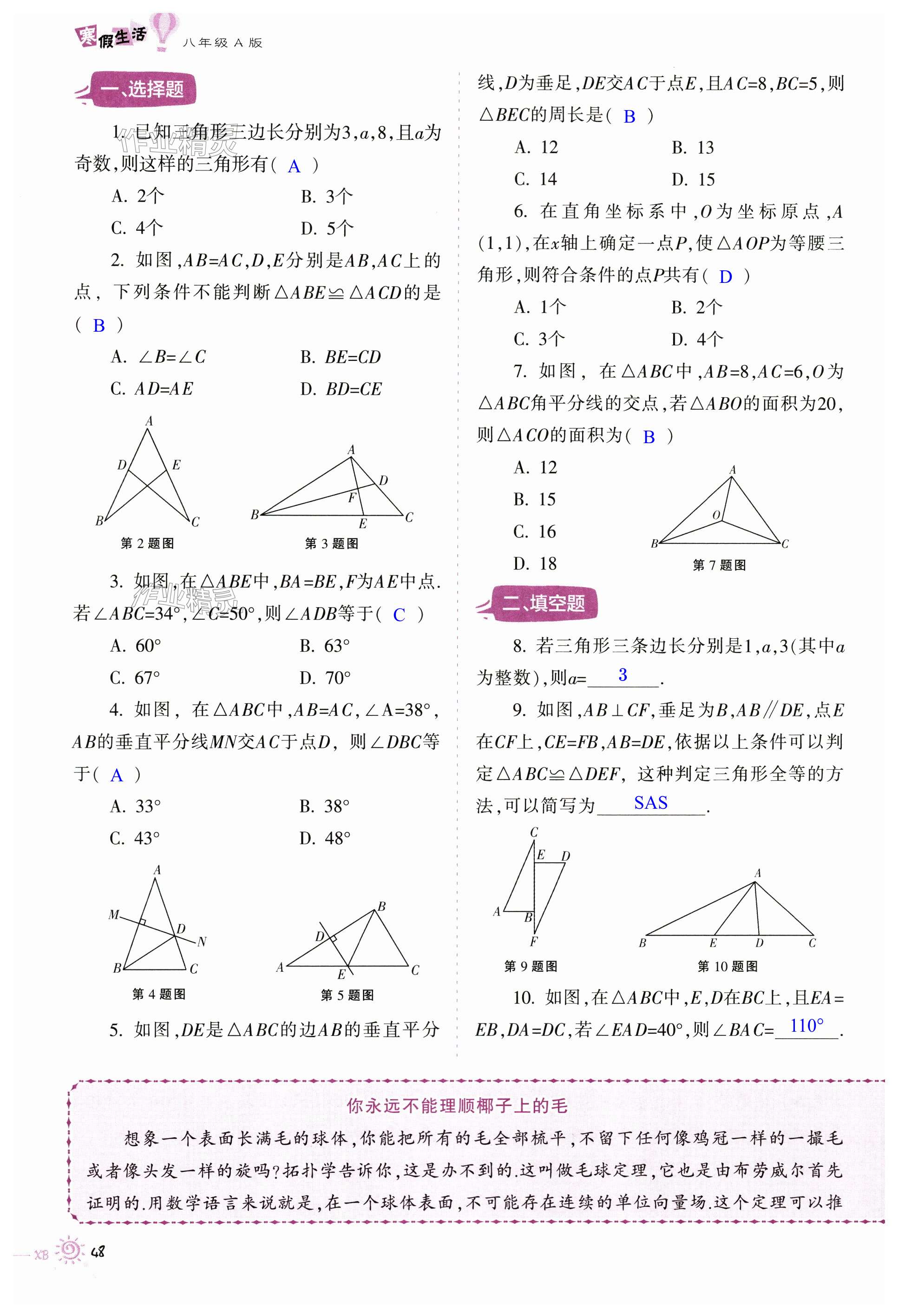 注:目前有些书本章节名称可能整理的还不是很完善,但都是按照顺序排列的,请同学们按照顺序仔细查找。练习册 2024年寒假生活八年级A版重庆出版社 答案主要是用来给同学们做完题方便对答案用的,请勿直接抄袭。