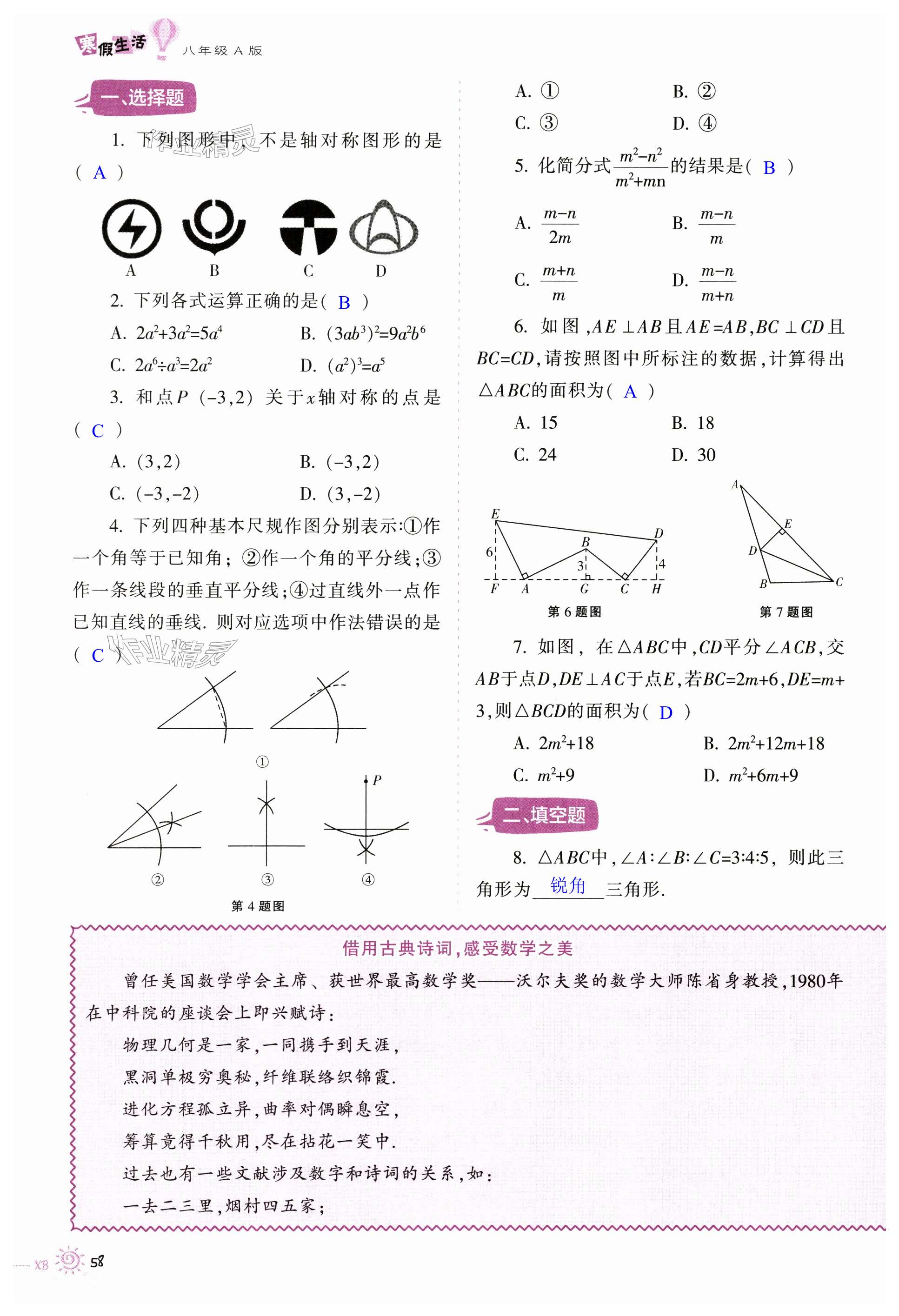 注:目前有些书本章节名称可能整理的还不是很完善,但都是按照顺序排列的,请同学们按照顺序仔细查找。练习册 2024年寒假生活八年级A版重庆出版社 答案主要是用来给同学们做完题方便对答案用的,请勿直接抄袭。