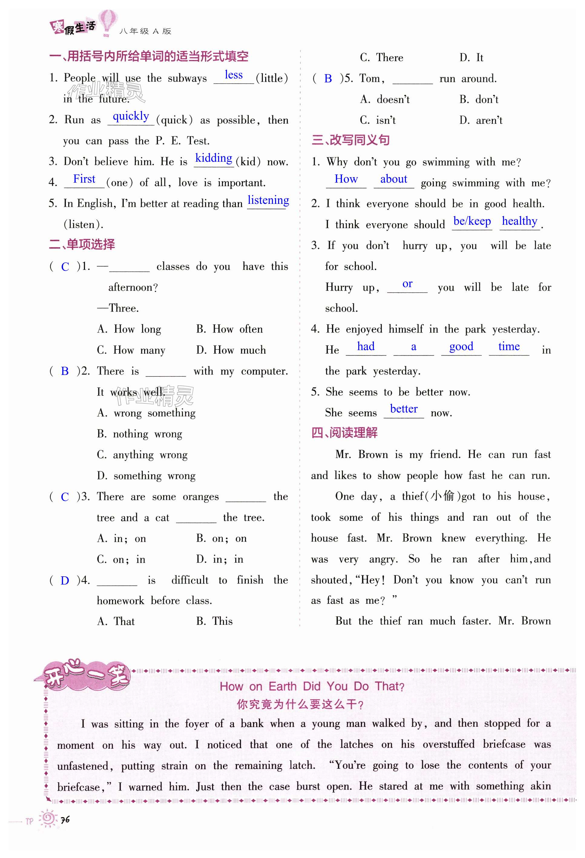 注:目前有些书本章节名称可能整理的还不是很完善,但都是按照顺序排列的,请同学们按照顺序仔细查找。练习册 2024年寒假生活八年级A版重庆出版社 答案主要是用来给同学们做完题方便对答案用的,请勿直接抄袭。