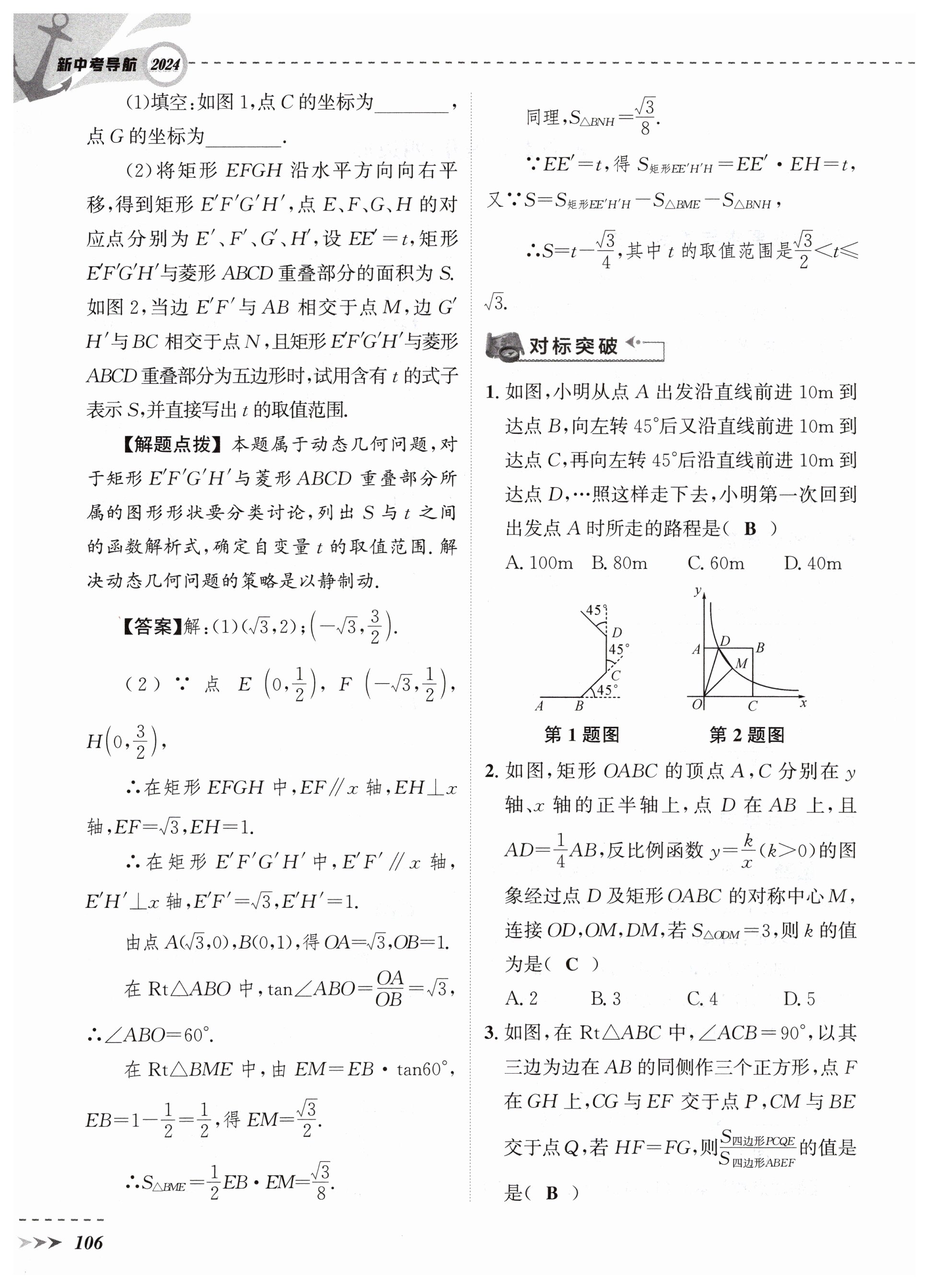 注:目前有些书本章节名称可能整理的还不是很完善,但都是按照顺序排列的,请同学们按照顺序仔细查找。练习册 2024年新中考导航长江出版社数学 答案主要是用来给同学们做完题方便对答案用的,请勿直接抄袭。