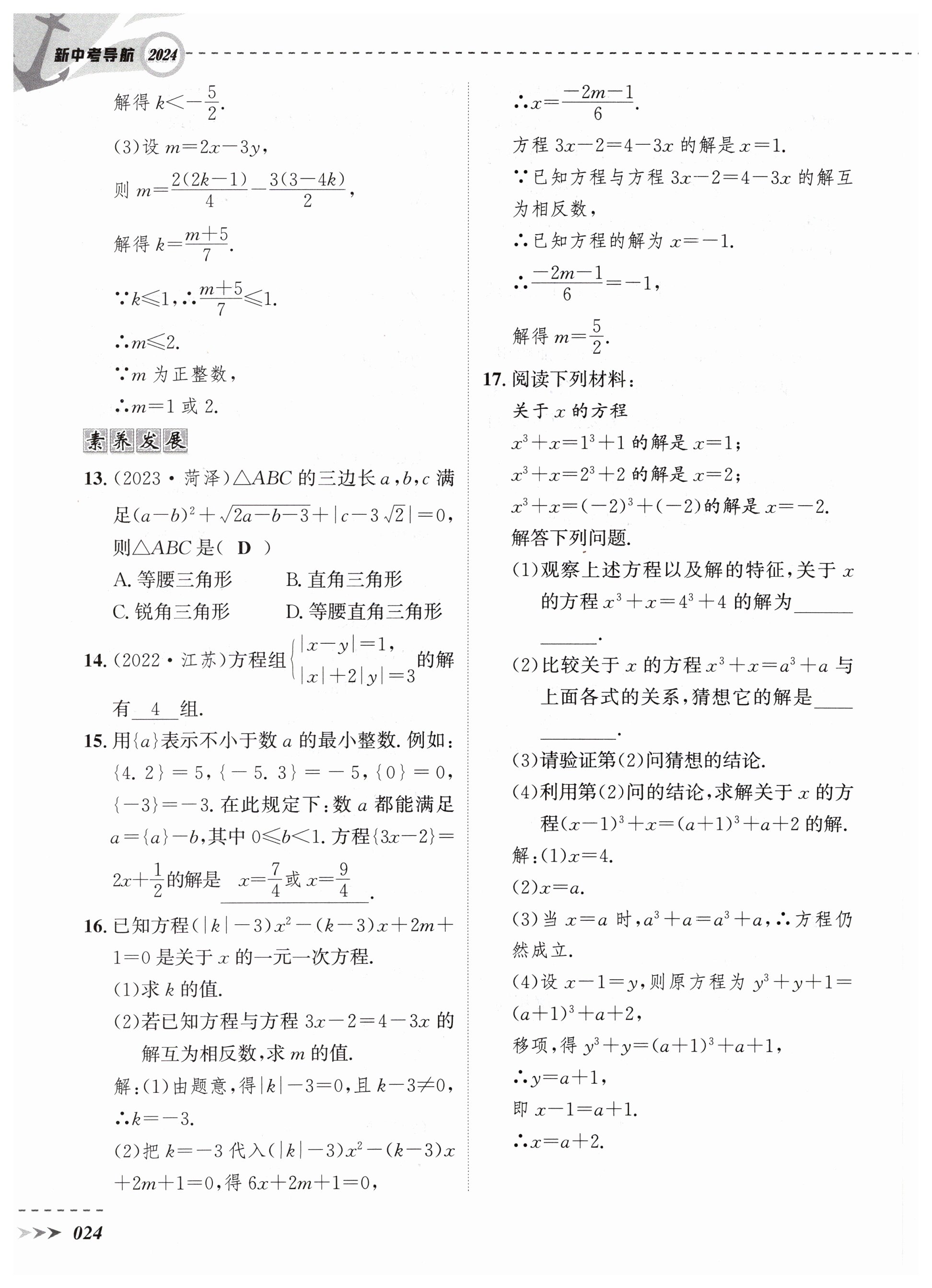 注:目前有些书本章节名称可能整理的还不是很完善,但都是按照顺序排列的,请同学们按照顺序仔细查找。练习册 2024年新中考导航长江出版社数学 答案主要是用来给同学们做完题方便对答案用的,请勿直接抄袭。