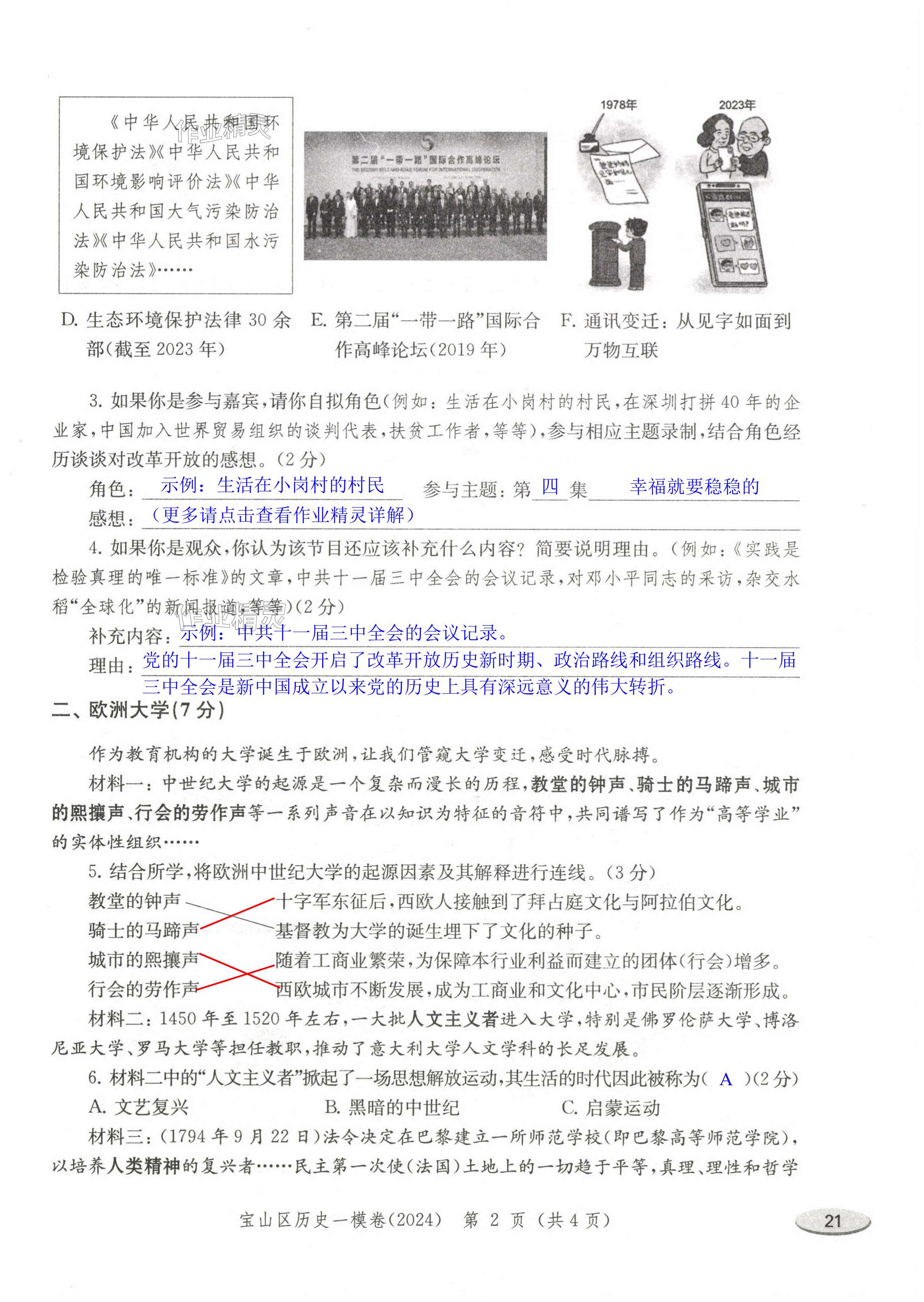 注:目前有些书本章节名称可能整理的还不是很完善,但都是按照顺序排列的,请同学们按照顺序仔细查找。练习册 2024年文化课强化训练历史 答案主要是用来给同学们做完题方便对答案用的,请勿直接抄袭。