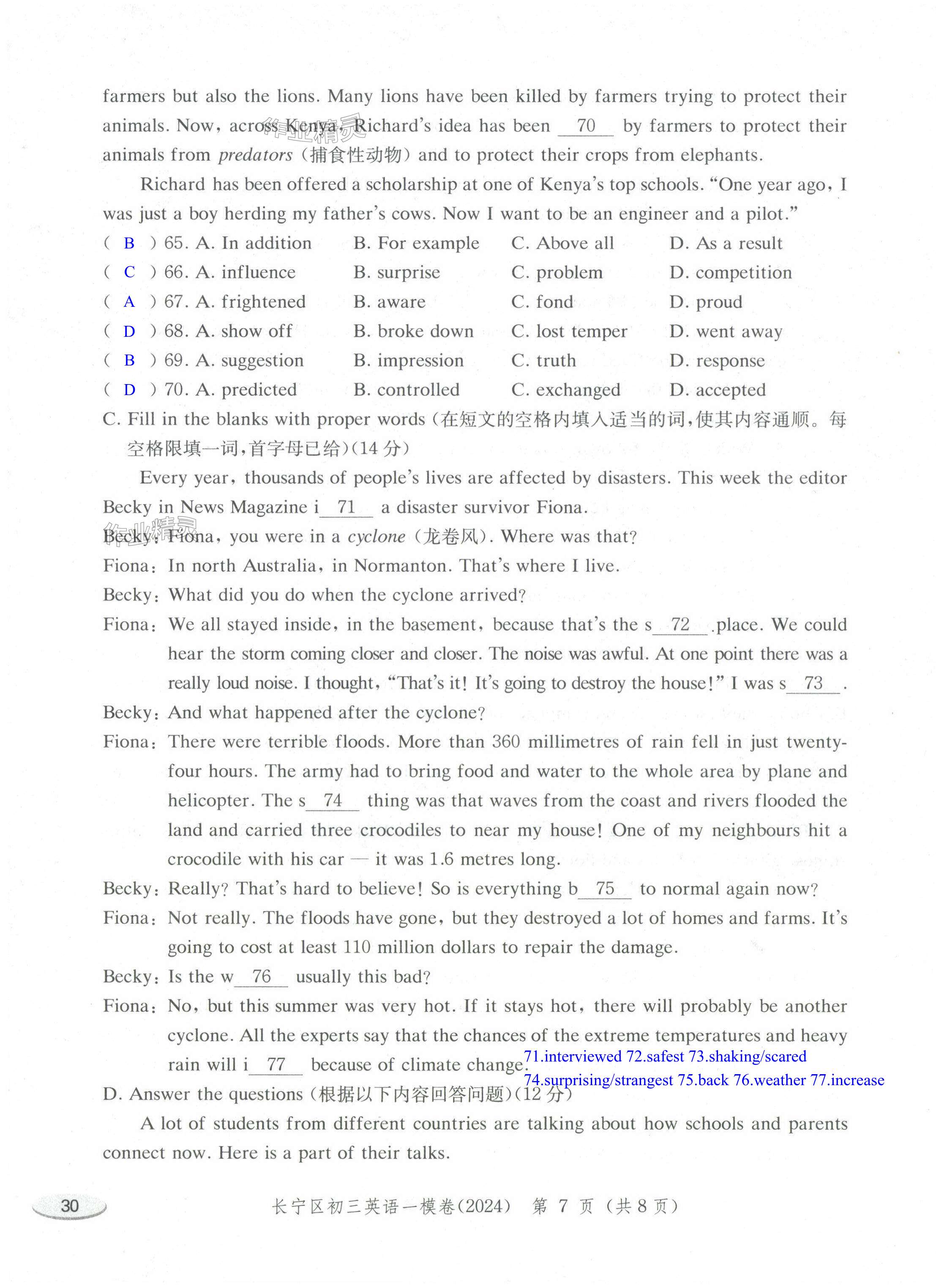 注:目前有些书本章节名称可能整理的还不是很完善,但都是按照顺序排列的,请同学们按照顺序仔细查找。练习册 2024年文化课强化训练英语 答案主要是用来给同学们做完题方便对答案用的,请勿直接抄袭。