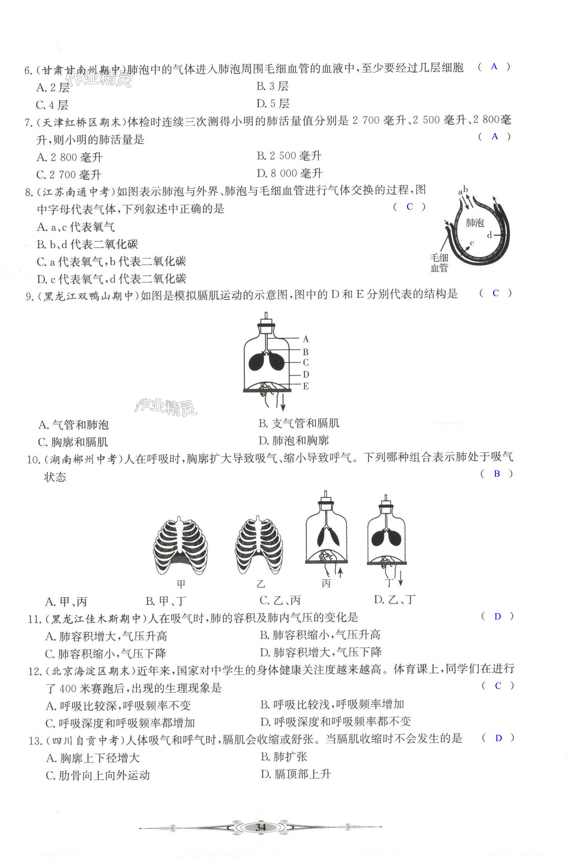 注:目前有些书本章节名称可能整理的还不是很完善,但都是按照顺序排列的,请同学们按照顺序仔细查找。练习册 2024年全能好卷七年级生物下册人教版 答案主要是用来给同学们做完题方便对答案用的,请勿直接抄袭。