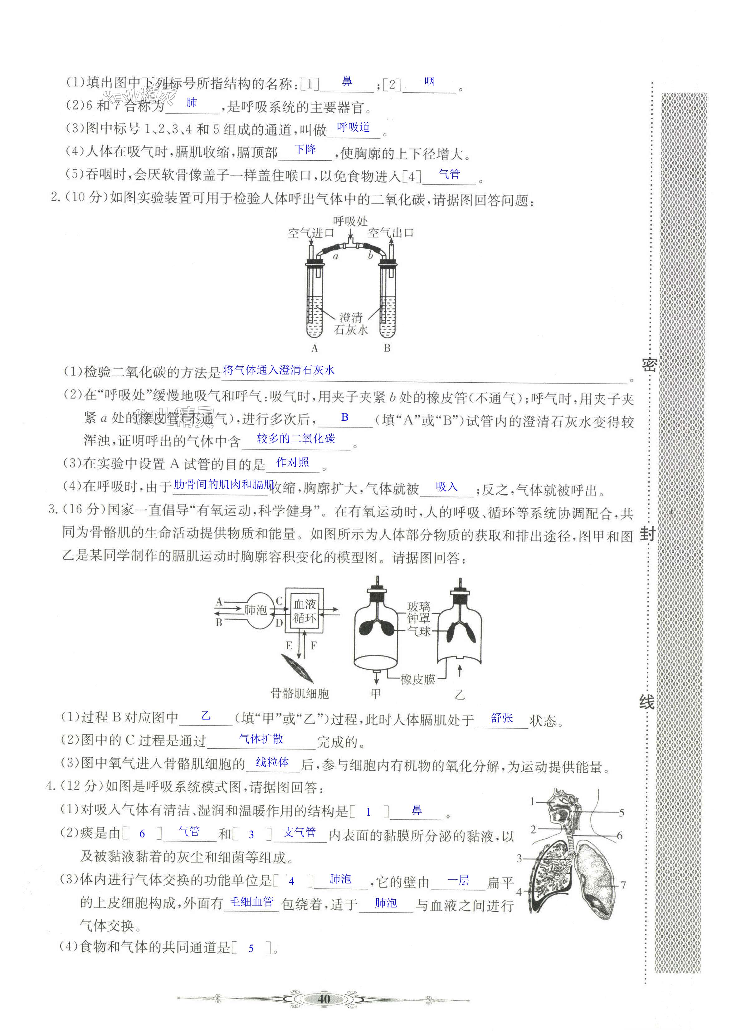 注:目前有些书本章节名称可能整理的还不是很完善,但都是按照顺序排列的,请同学们按照顺序仔细查找。练习册 2024年全能好卷七年级生物下册人教版 答案主要是用来给同学们做完题方便对答案用的,请勿直接抄袭。
