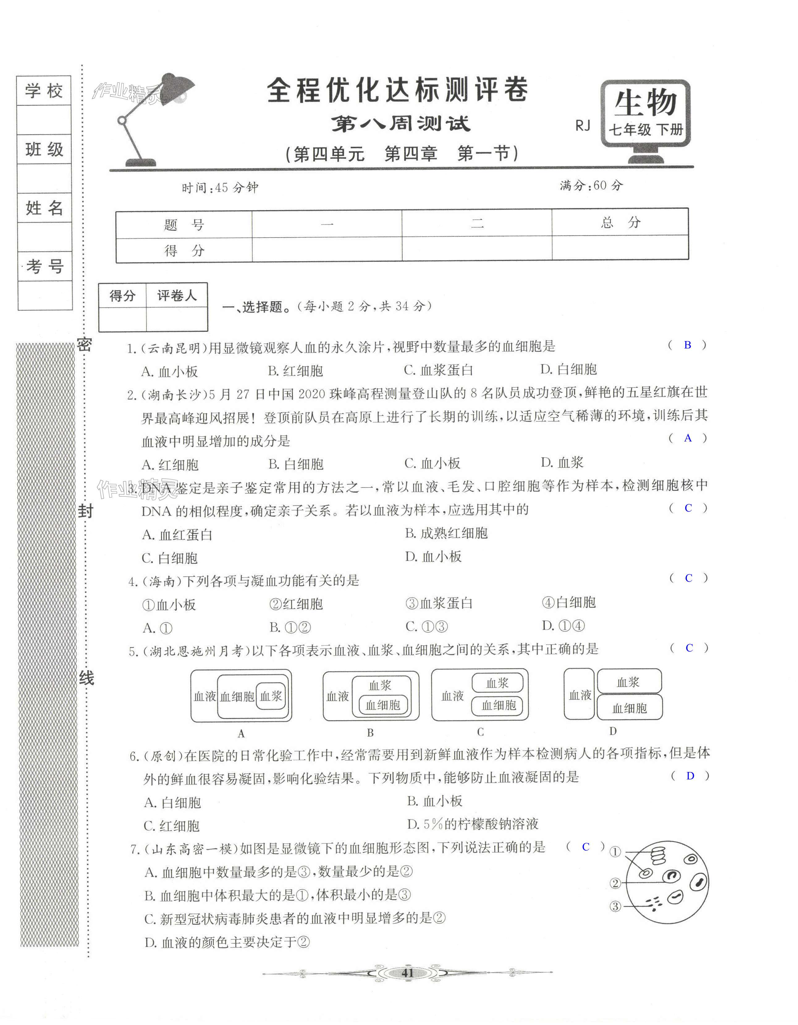 注:目前有些书本章节名称可能整理的还不是很完善,但都是按照顺序排列的,请同学们按照顺序仔细查找。练习册 2024年全能好卷七年级生物下册人教版 答案主要是用来给同学们做完题方便对答案用的,请勿直接抄袭。