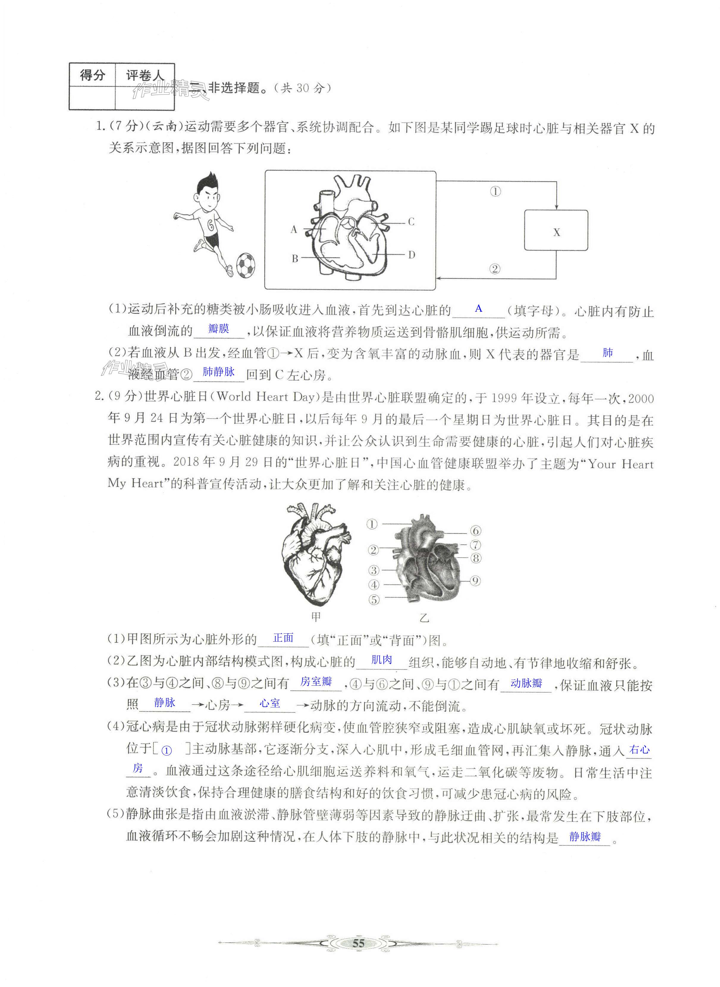 注:目前有些书本章节名称可能整理的还不是很完善,但都是按照顺序排列的,请同学们按照顺序仔细查找。练习册 2024年全能好卷七年级生物下册人教版 答案主要是用来给同学们做完题方便对答案用的,请勿直接抄袭。