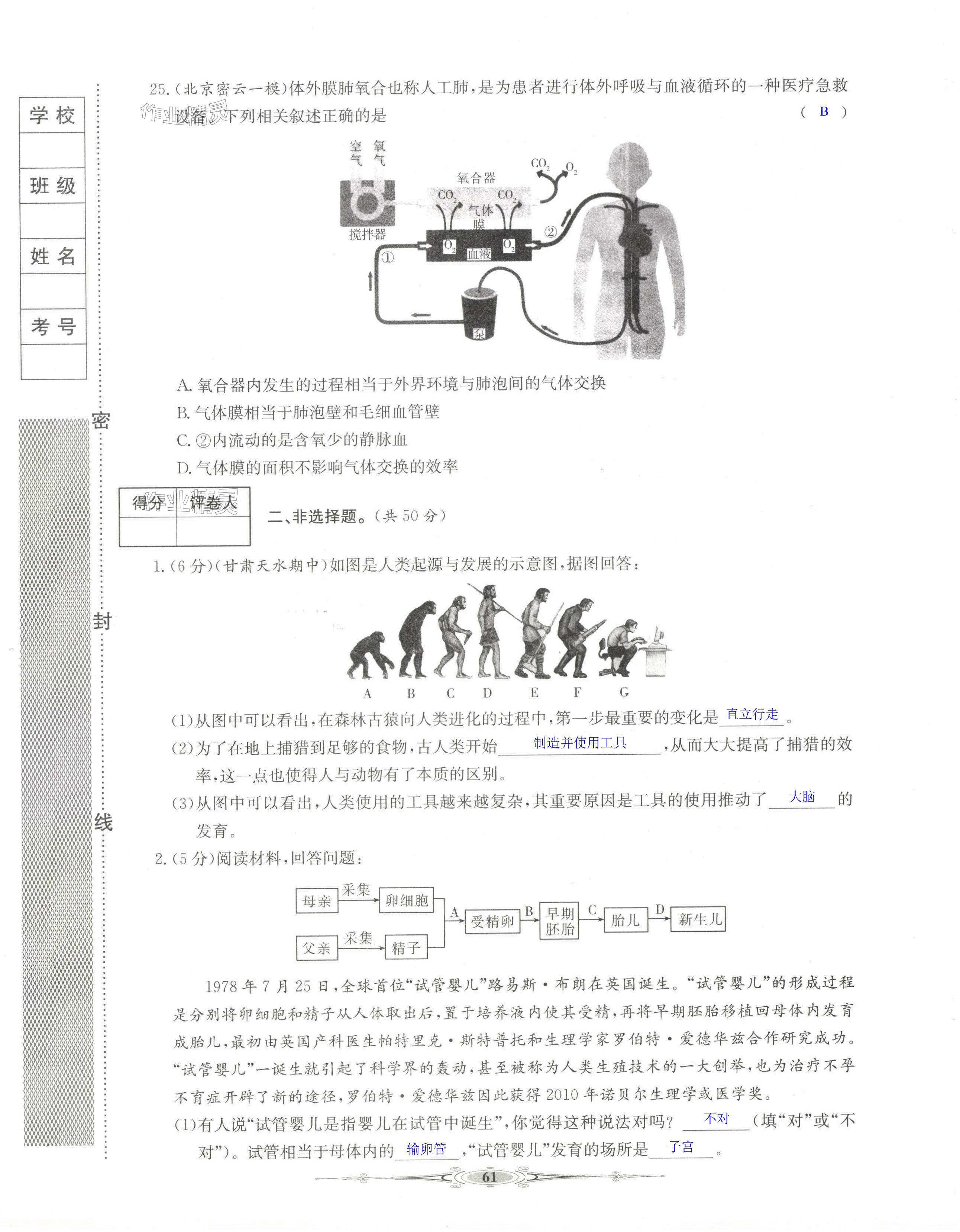 注:目前有些书本章节名称可能整理的还不是很完善,但都是按照顺序排列的,请同学们按照顺序仔细查找。练习册 2024年全能好卷七年级生物下册人教版 答案主要是用来给同学们做完题方便对答案用的,请勿直接抄袭。
