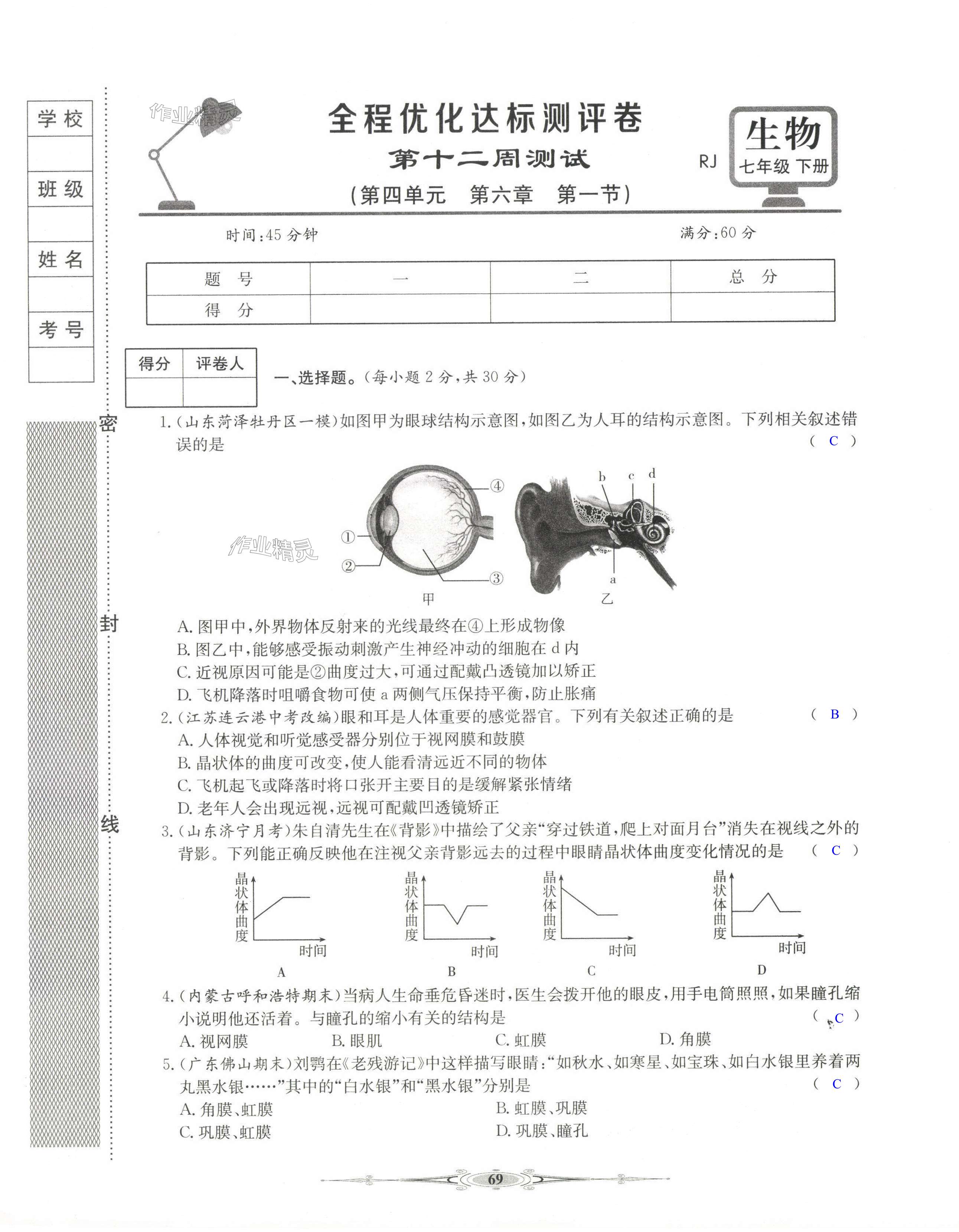 注:目前有些书本章节名称可能整理的还不是很完善,但都是按照顺序排列的,请同学们按照顺序仔细查找。练习册 2024年全能好卷七年级生物下册人教版 答案主要是用来给同学们做完题方便对答案用的,请勿直接抄袭。