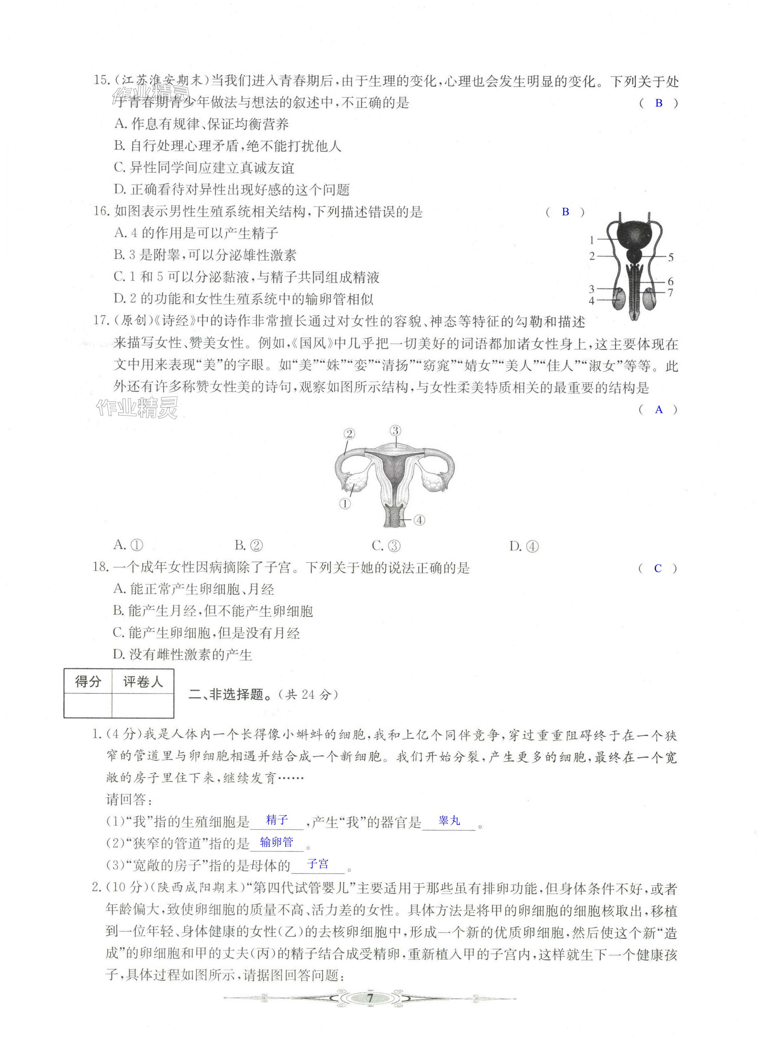 注:目前有些书本章节名称可能整理的还不是很完善,但都是按照顺序排列的,请同学们按照顺序仔细查找。练习册 2024年全能好卷七年级生物下册人教版 答案主要是用来给同学们做完题方便对答案用的,请勿直接抄袭。