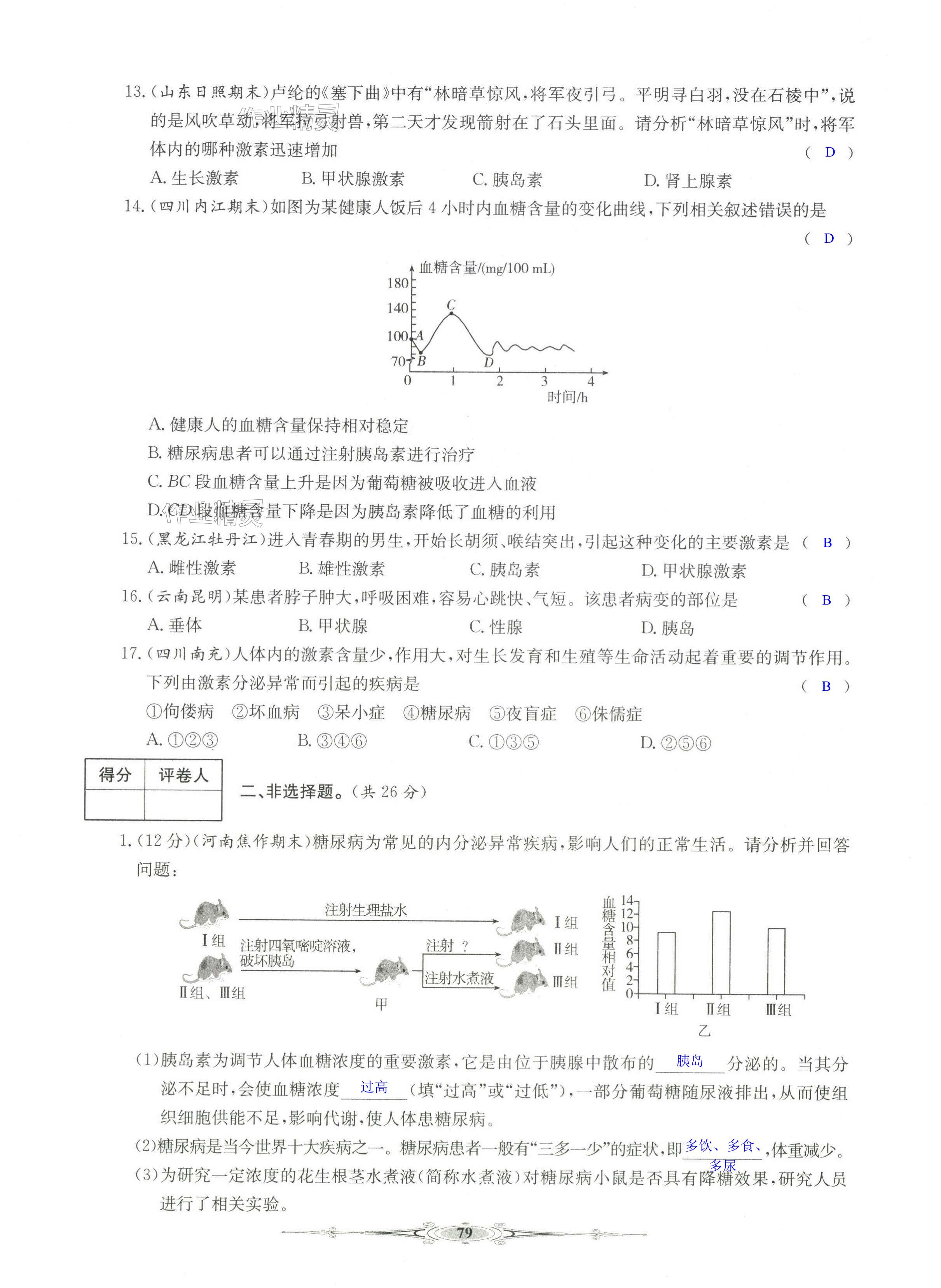 注:目前有些书本章节名称可能整理的还不是很完善,但都是按照顺序排列的,请同学们按照顺序仔细查找。练习册 2024年全能好卷七年级生物下册人教版 答案主要是用来给同学们做完题方便对答案用的,请勿直接抄袭。