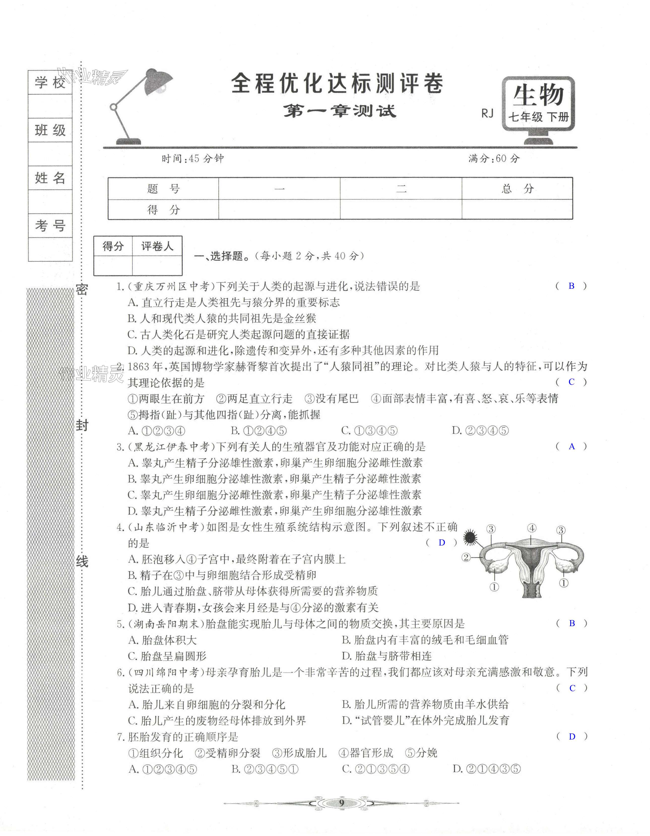 注:目前有些书本章节名称可能整理的还不是很完善,但都是按照顺序排列的,请同学们按照顺序仔细查找。练习册 2024年全能好卷七年级生物下册人教版 答案主要是用来给同学们做完题方便对答案用的,请勿直接抄袭。
