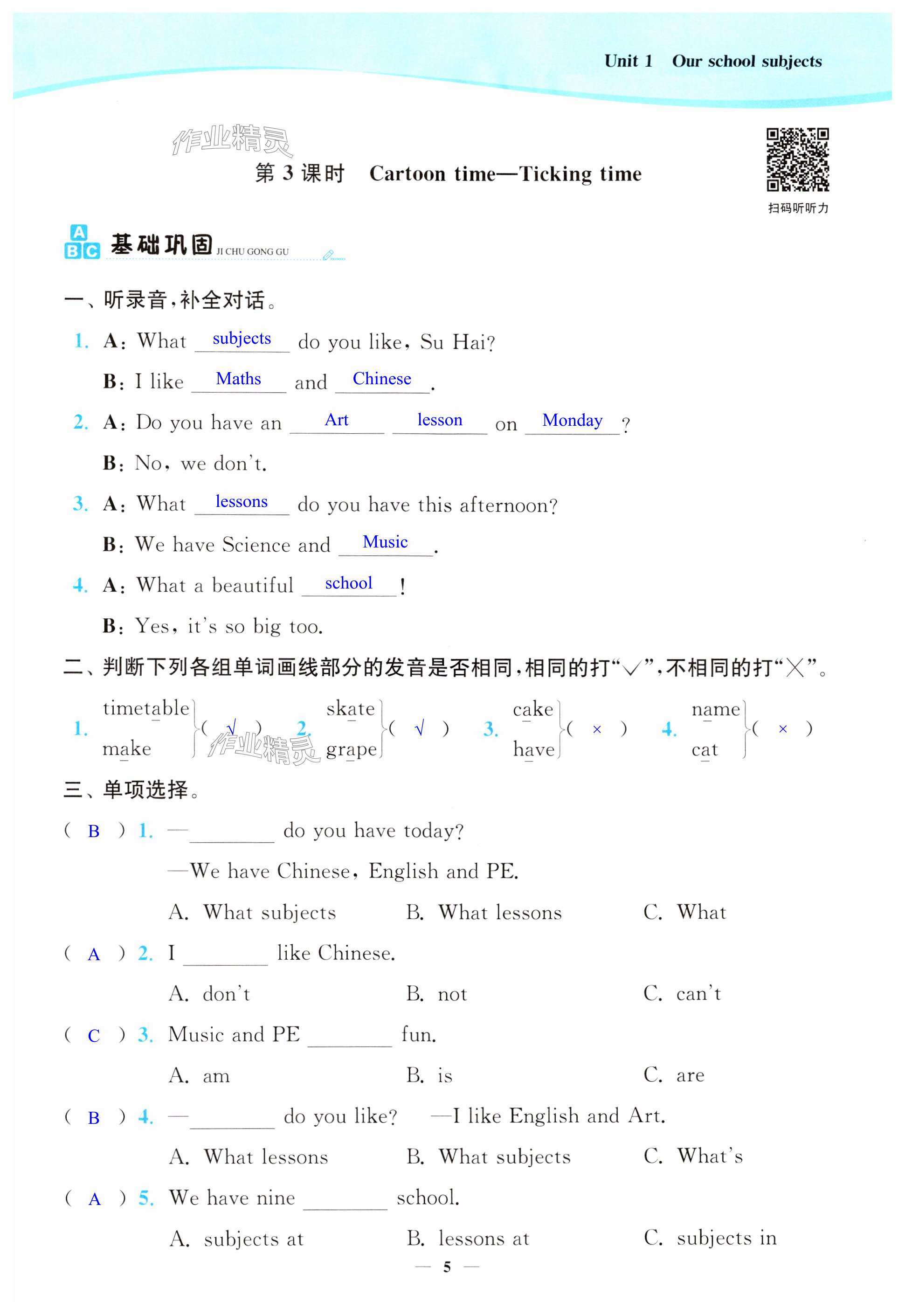 注:目前有些书本章节名称可能整理的还不是很完善,但都是按照顺序排列的,请同学们按照顺序仔细查找。练习册 2024年南通小题课时作业本四年级英语下册译林版 答案主要是用来给同学们做完题方便对答案用的,请勿直接抄袭。