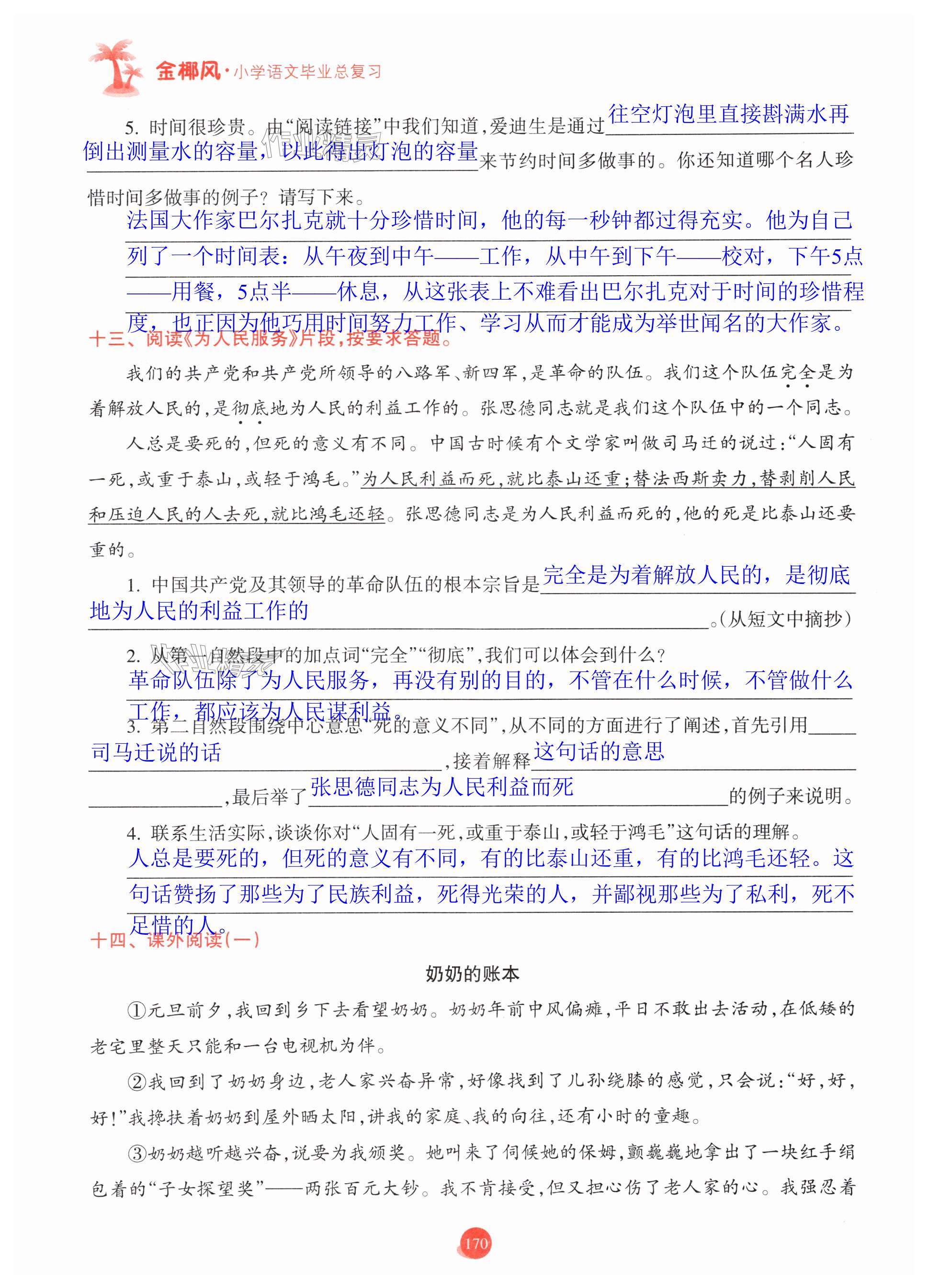 注:目前有些书本章节名称可能整理的还不是很完善,但都是按照顺序排列的,请同学们按照顺序仔细查找。练习册 2024年金椰风小学语文毕业总复习六年级人教版 答案主要是用来给同学们做完题方便对答案用的,请勿直接抄袭。