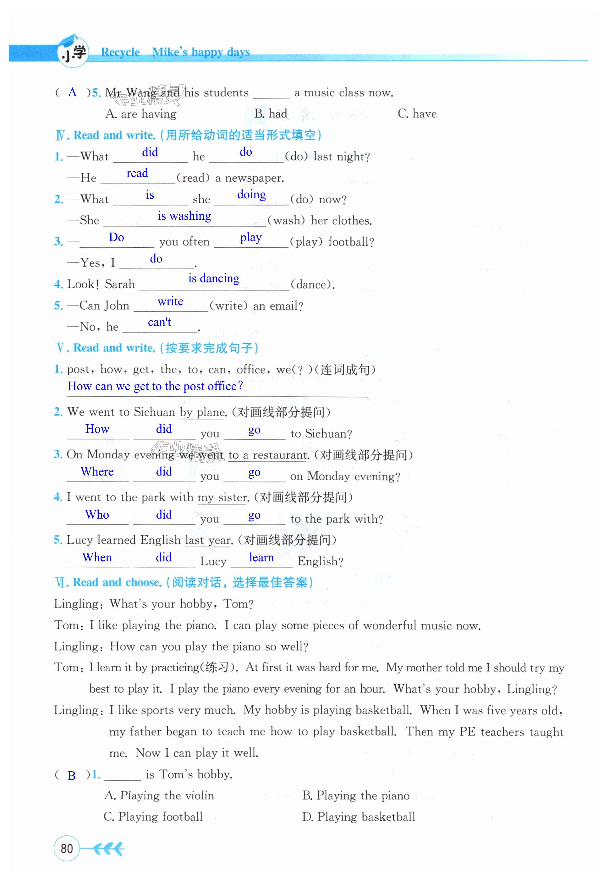 注:目前有些书本章节名称可能整理的还不是很完善,但都是按照顺序排列的,请同学们按照顺序仔细查找。练习册 2024年同步解析与测评学考练六年级英语下册人教版 答案主要是用来给同学们做完题方便对答案用的,请勿直接抄袭。