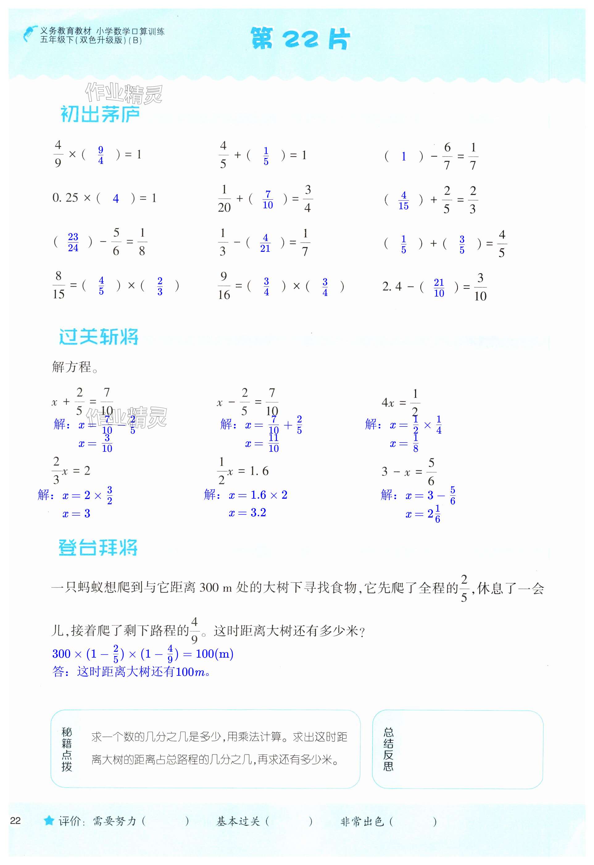 注:目前有些书本章节名称可能整理的还不是很完善,但都是按照顺序排列的,请同学们按照顺序仔细查找。练习册 2024年口算训练五年级数学下册北师大版升级版 答案主要是用来给同学们做完题方便对答案用的,请勿直接抄袭。