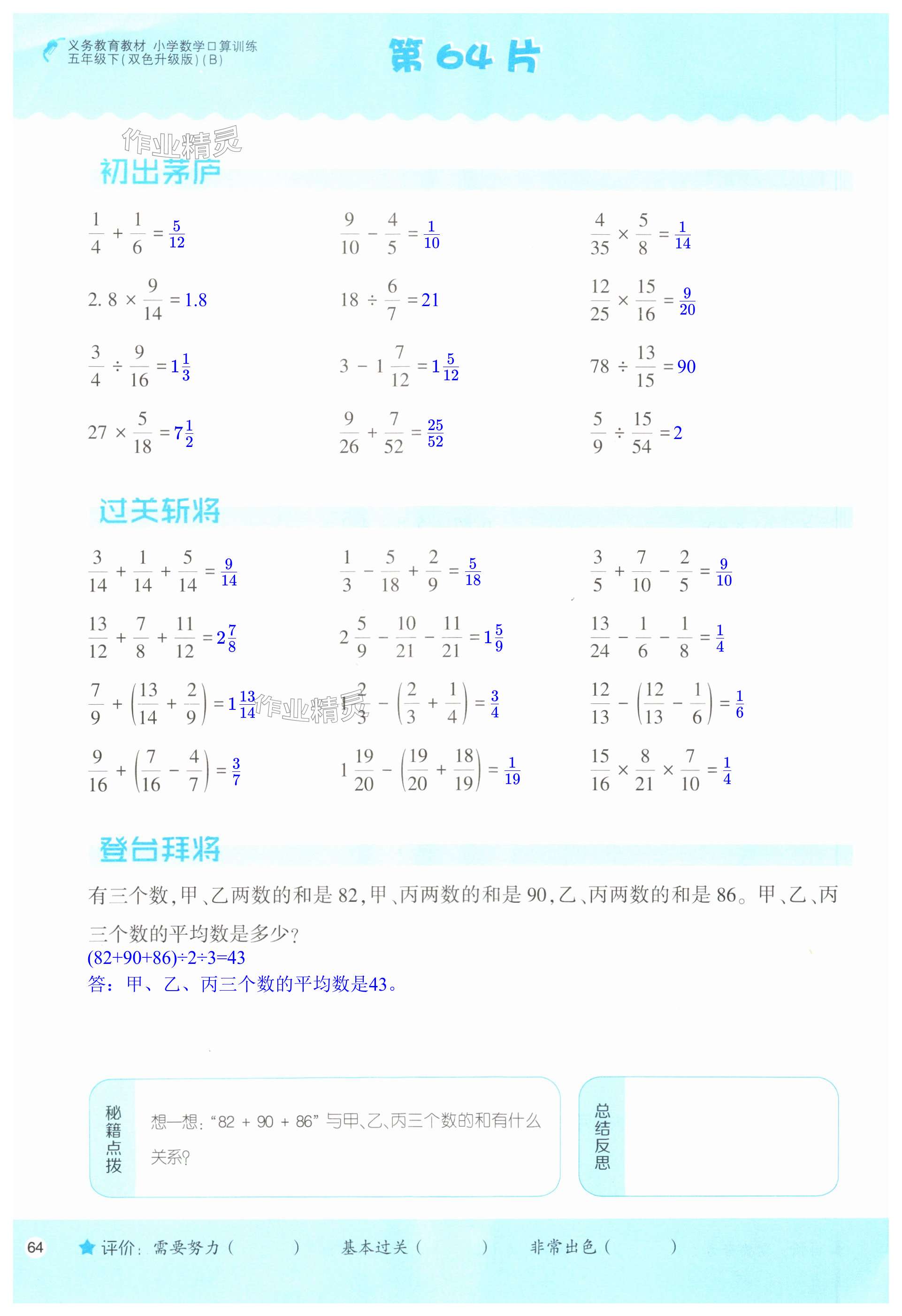 注:目前有些书本章节名称可能整理的还不是很完善,但都是按照顺序排列的,请同学们按照顺序仔细查找。练习册 2024年口算训练五年级数学下册北师大版升级版 答案主要是用来给同学们做完题方便对答案用的,请勿直接抄袭。