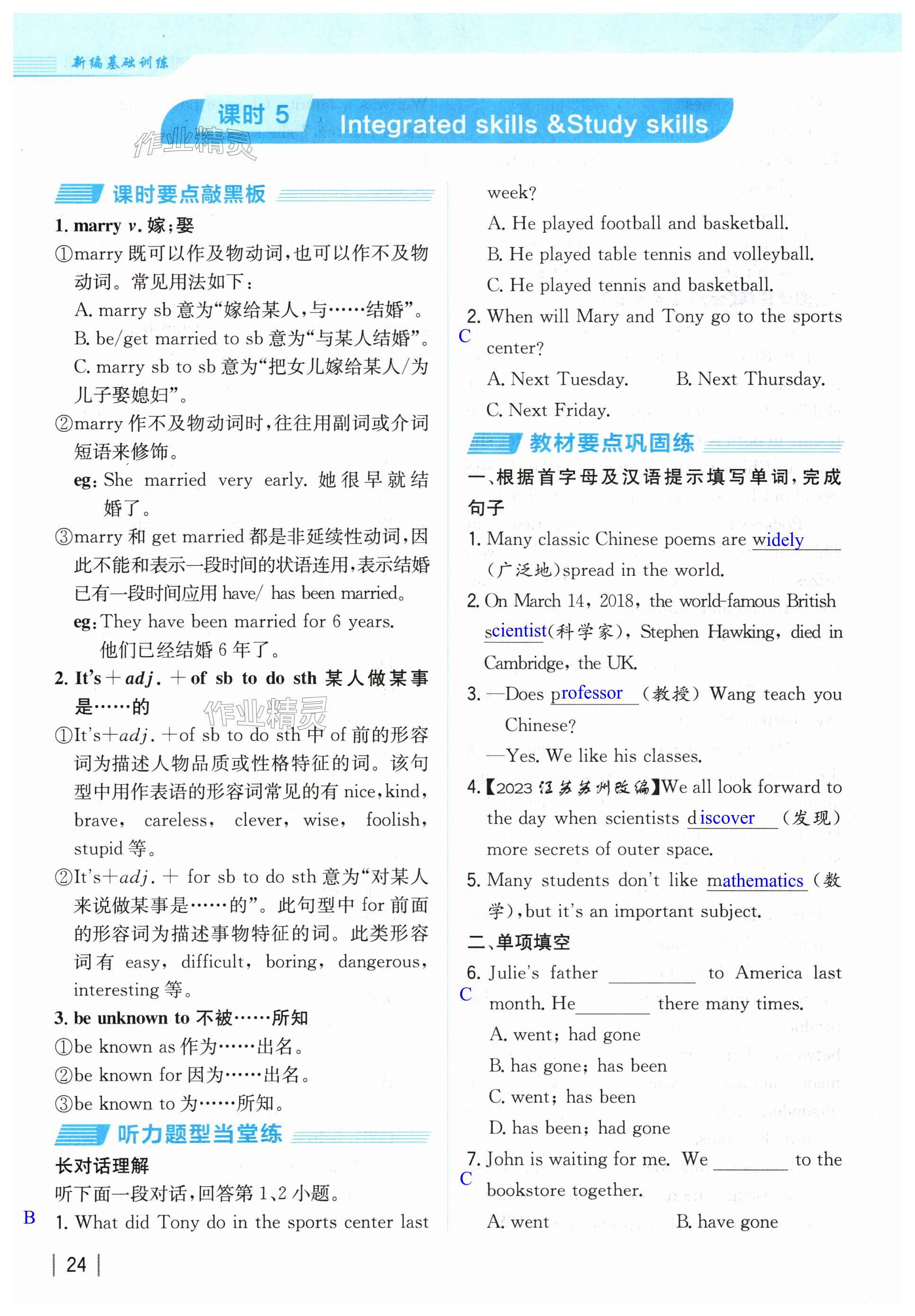 注:目前有些书本章节名称可能整理的还不是很完善,但都是按照顺序排列的,请同学们按照顺序仔细查找。练习册 2024年新编基础训练九年级英语下册译林版 答案主要是用来给同学们做完题方便对答案用的,请勿直接抄袭。