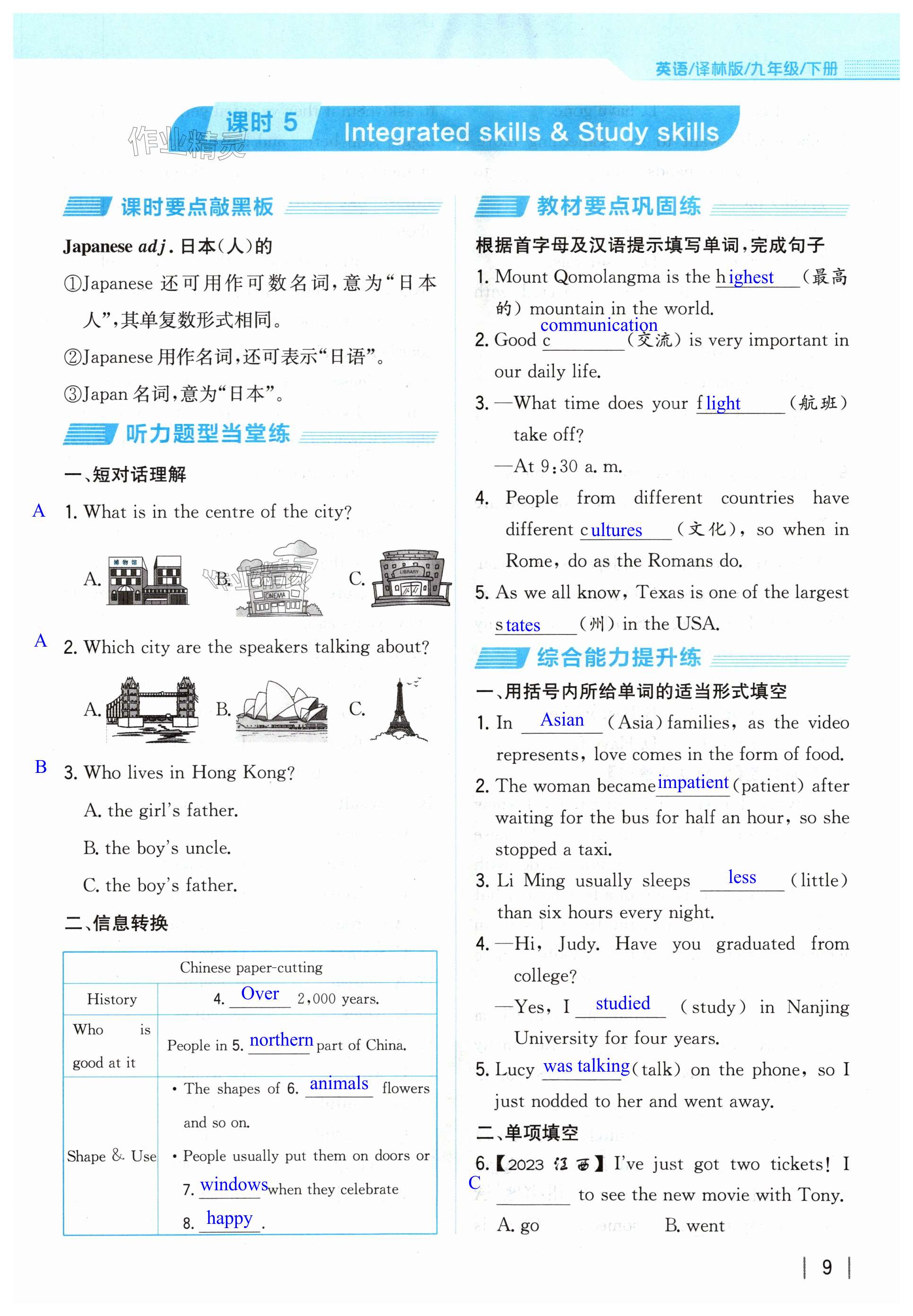 注:目前有些书本章节名称可能整理的还不是很完善,但都是按照顺序排列的,请同学们按照顺序仔细查找。练习册 2024年新编基础训练九年级英语下册译林版 答案主要是用来给同学们做完题方便对答案用的,请勿直接抄袭。