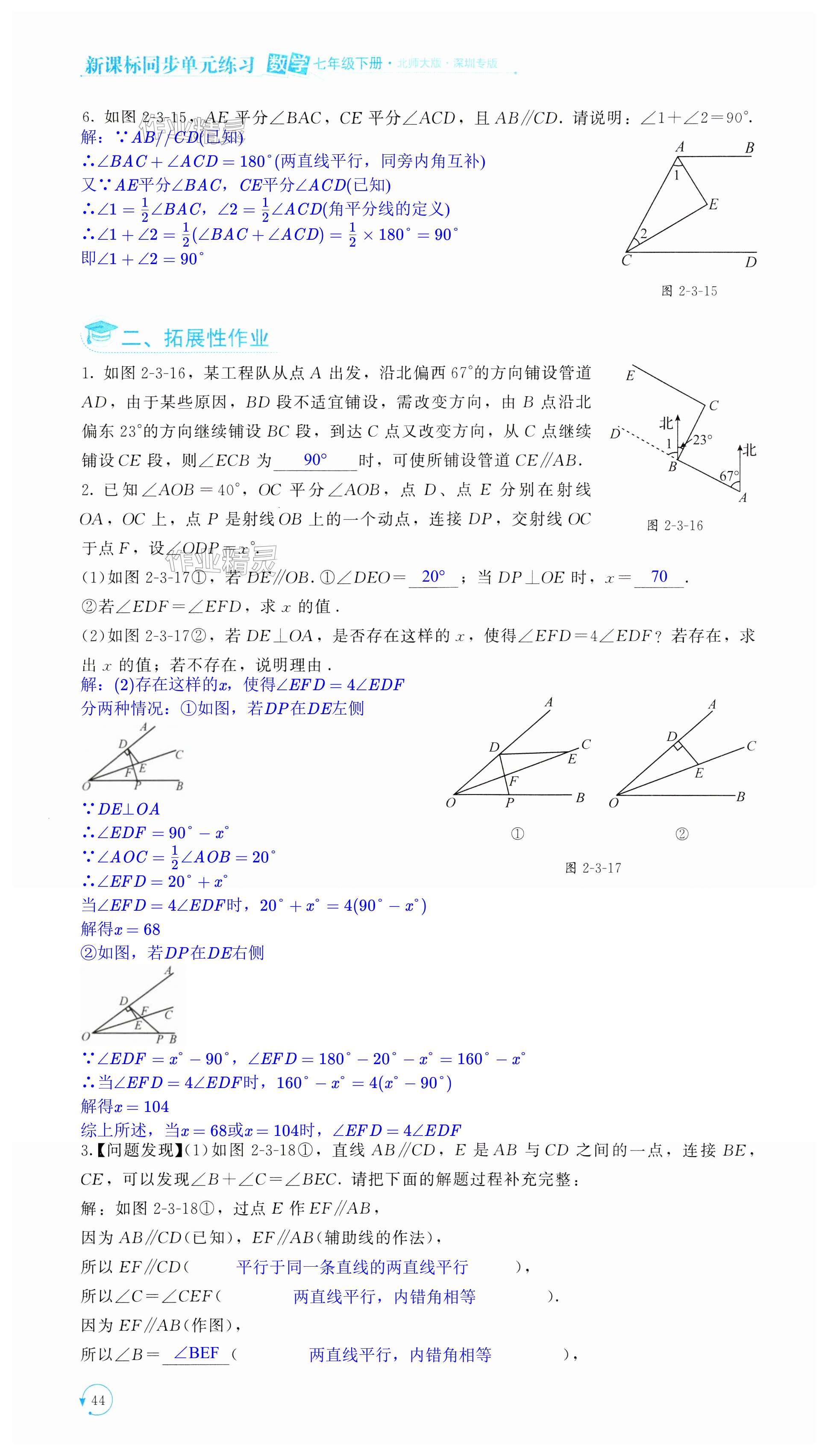 注:目前有些书本章节名称可能整理的还不是很完善,但都是按照顺序排列的,请同学们按照顺序仔细查找。练习册 2024年新课标同步单元练习七年级数学下册北师大版深圳专版 答案主要是用来给同学们做完题方便对答案用的,请勿直接抄袭。