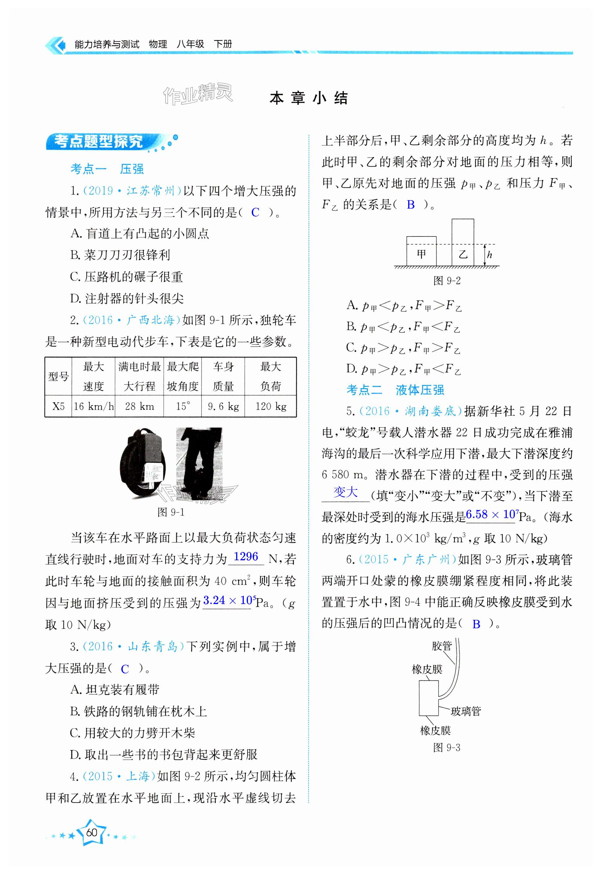 注:目前有些书本章节名称可能整理的还不是很完善,但都是按照顺序排列的,请同学们按照顺序仔细查找。练习册 2024年能力培养与测试八年级物理下册人教版 答案主要是用来给同学们做完题方便对答案用的,请勿直接抄袭。