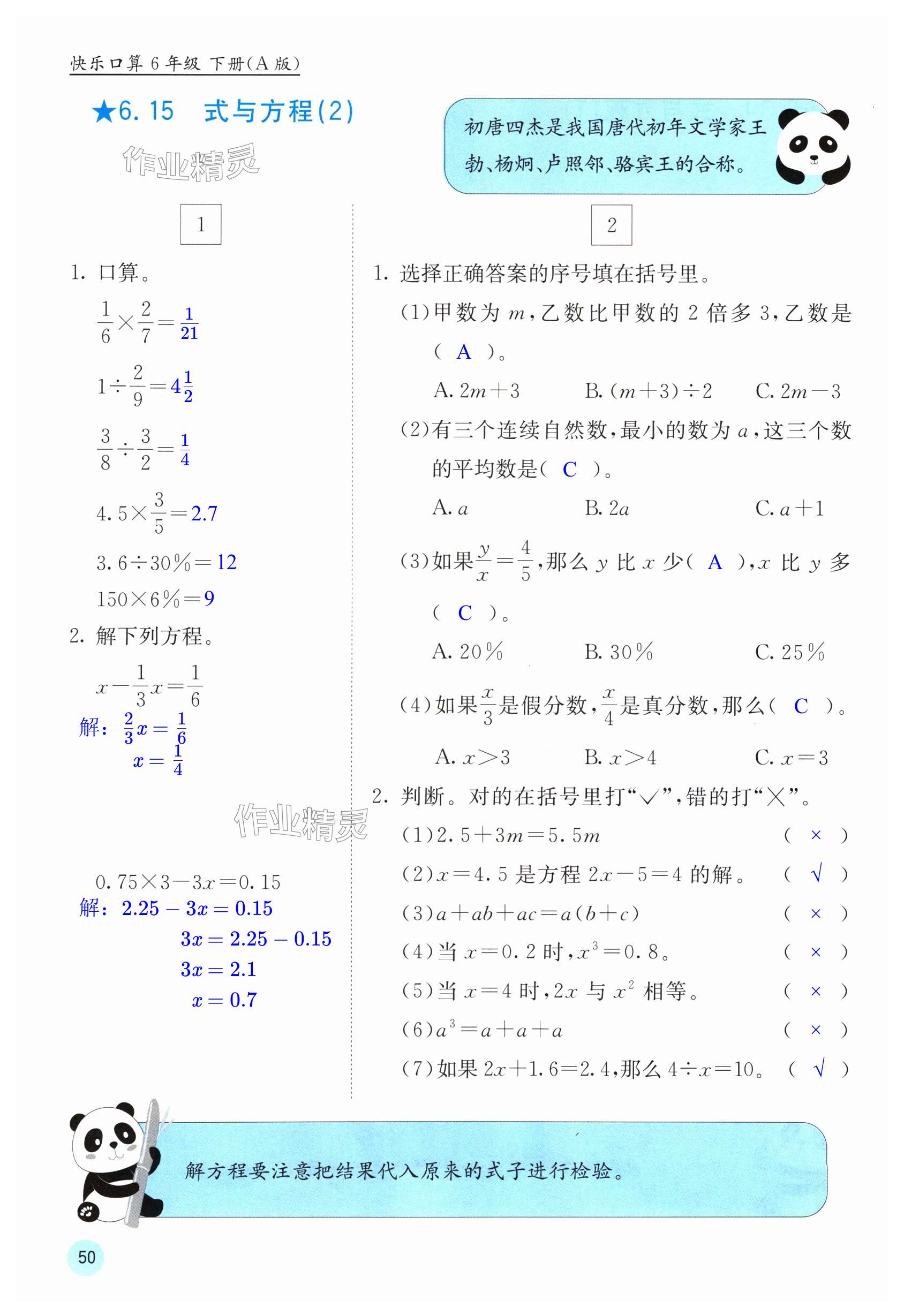 注:目前有些书本章节名称可能整理的还不是很完善,但都是按照顺序排列的,请同学们按照顺序仔细查找。练习册 2024年快乐口算六年级数学下册人教版 答案主要是用来给同学们做完题方便对答案用的,请勿直接抄袭。