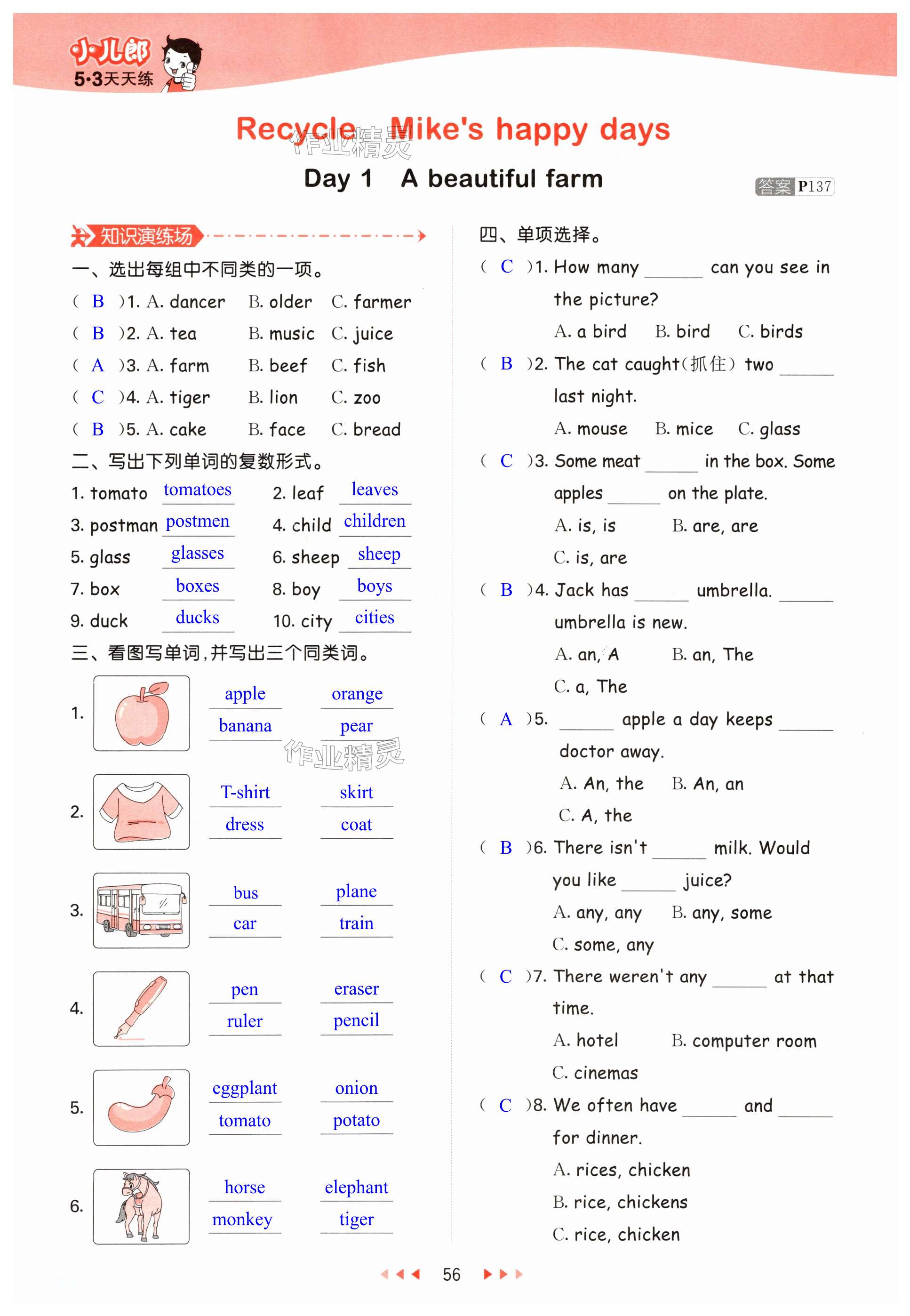 注:目前有些书本章节名称可能整理的还不是很完善,但都是按照顺序排列的,请同学们按照顺序仔细查找。练习册 2024年53天天练六年级英语下册人教版 答案主要是用来给同学们做完题方便对答案用的,请勿直接抄袭。