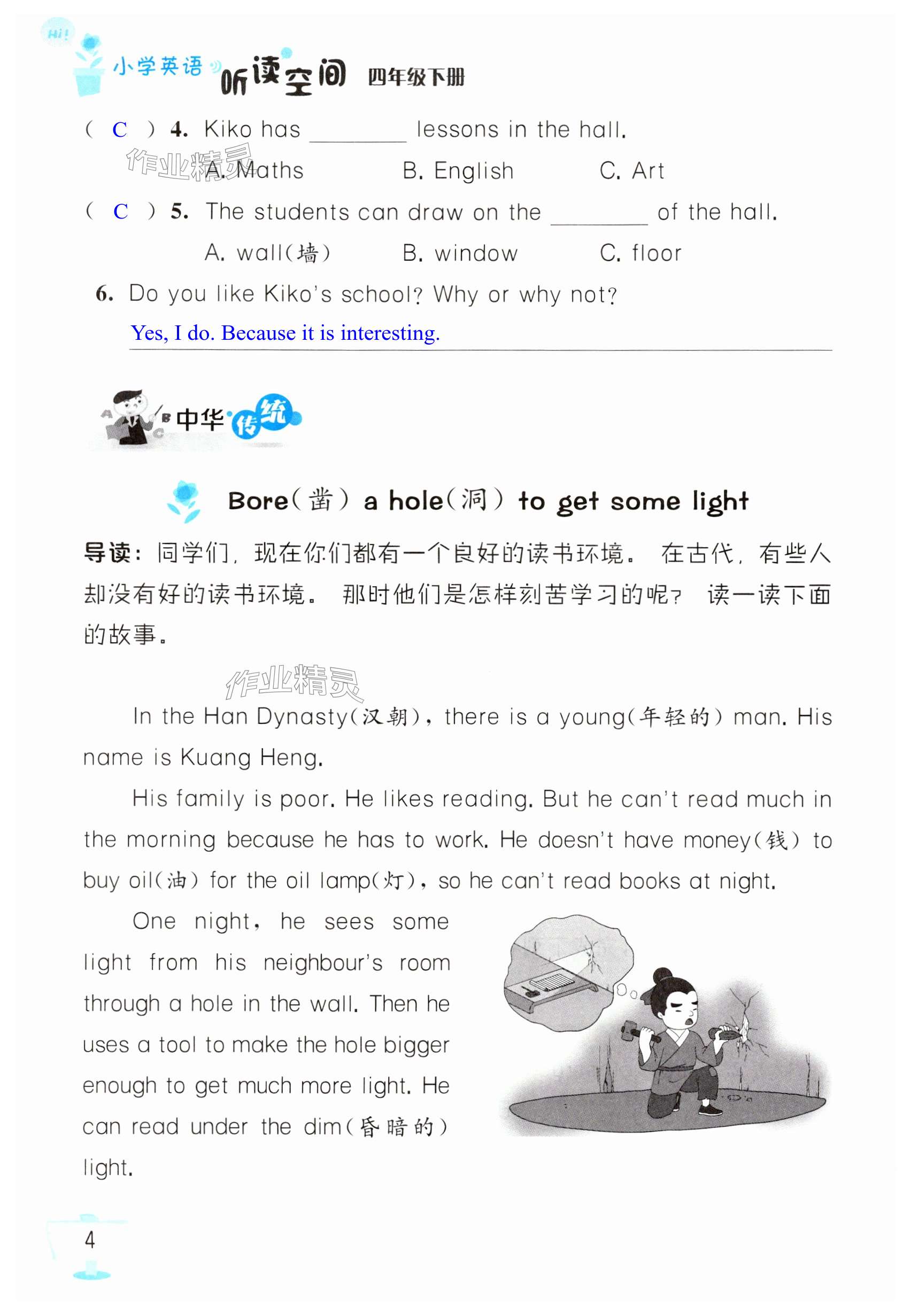 注:目前有些书本章节名称可能整理的还不是很完善,但都是按照顺序排列的,请同学们按照顺序仔细查找。练习册 2024年英语听读空间四年级下册译林版 答案主要是用来给同学们做完题方便对答案用的,请勿直接抄袭。