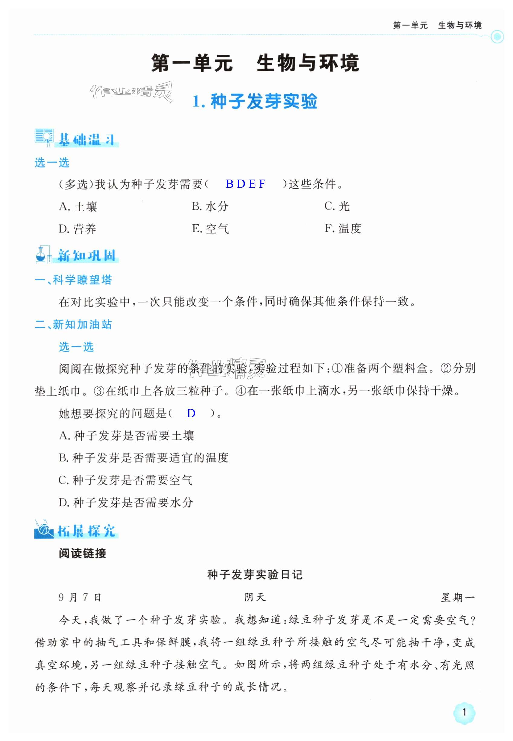 注:目前有些书本章节名称可能整理的还不是很完善,但都是按照顺序排列的,请同学们按照顺序仔细查找。练习册 2024年新课标学习方法指导丛书五年级科学下册教科版 答案主要是用来给同学们做完题方便对答案用的,请勿直接抄袭。
