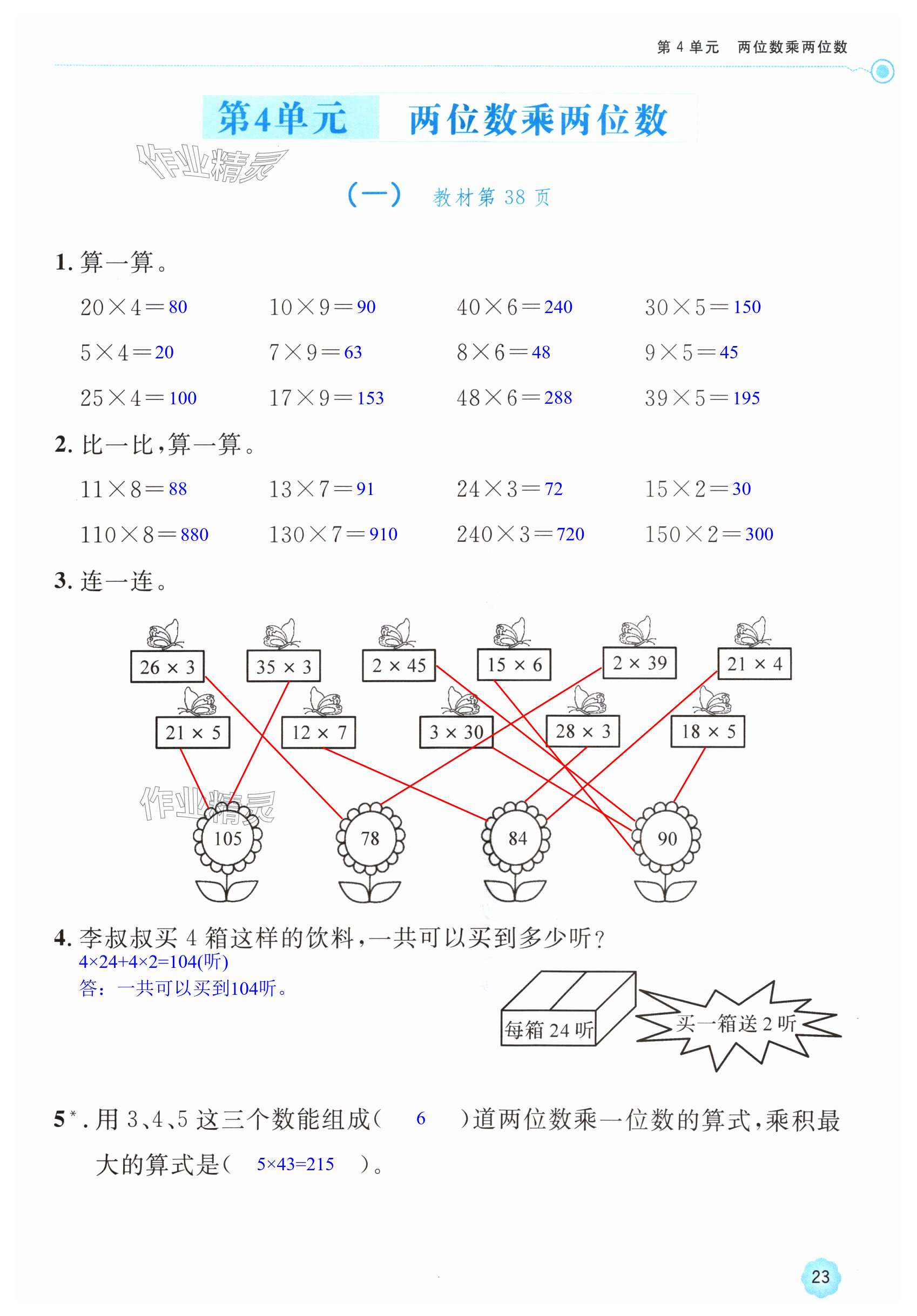 注:目前有些书本章节名称可能整理的还不是很完善,但都是按照顺序排列的,请同学们按照顺序仔细查找。练习册 2024年新课标学习方法指导丛书三年级数学下册人教版 答案主要是用来给同学们做完题方便对答案用的,请勿直接抄袭。