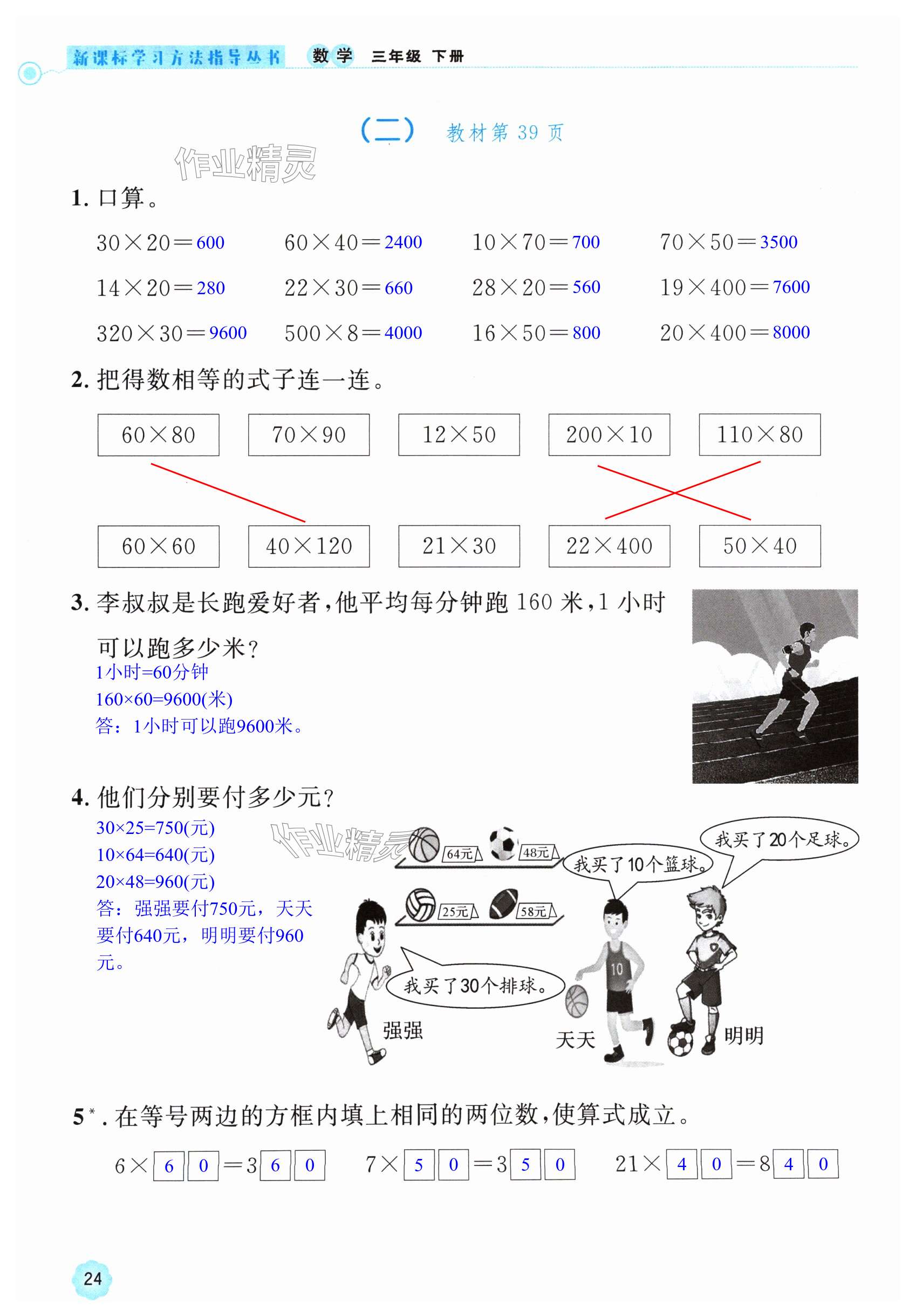 注:目前有些书本章节名称可能整理的还不是很完善,但都是按照顺序排列的,请同学们按照顺序仔细查找。练习册 2024年新课标学习方法指导丛书三年级数学下册人教版 答案主要是用来给同学们做完题方便对答案用的,请勿直接抄袭。