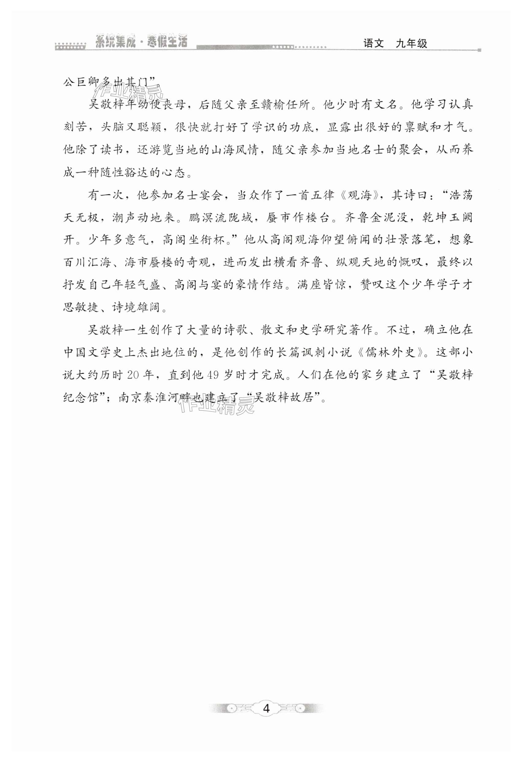 2024年寒假生活北京师范大学出版社九年级语文
