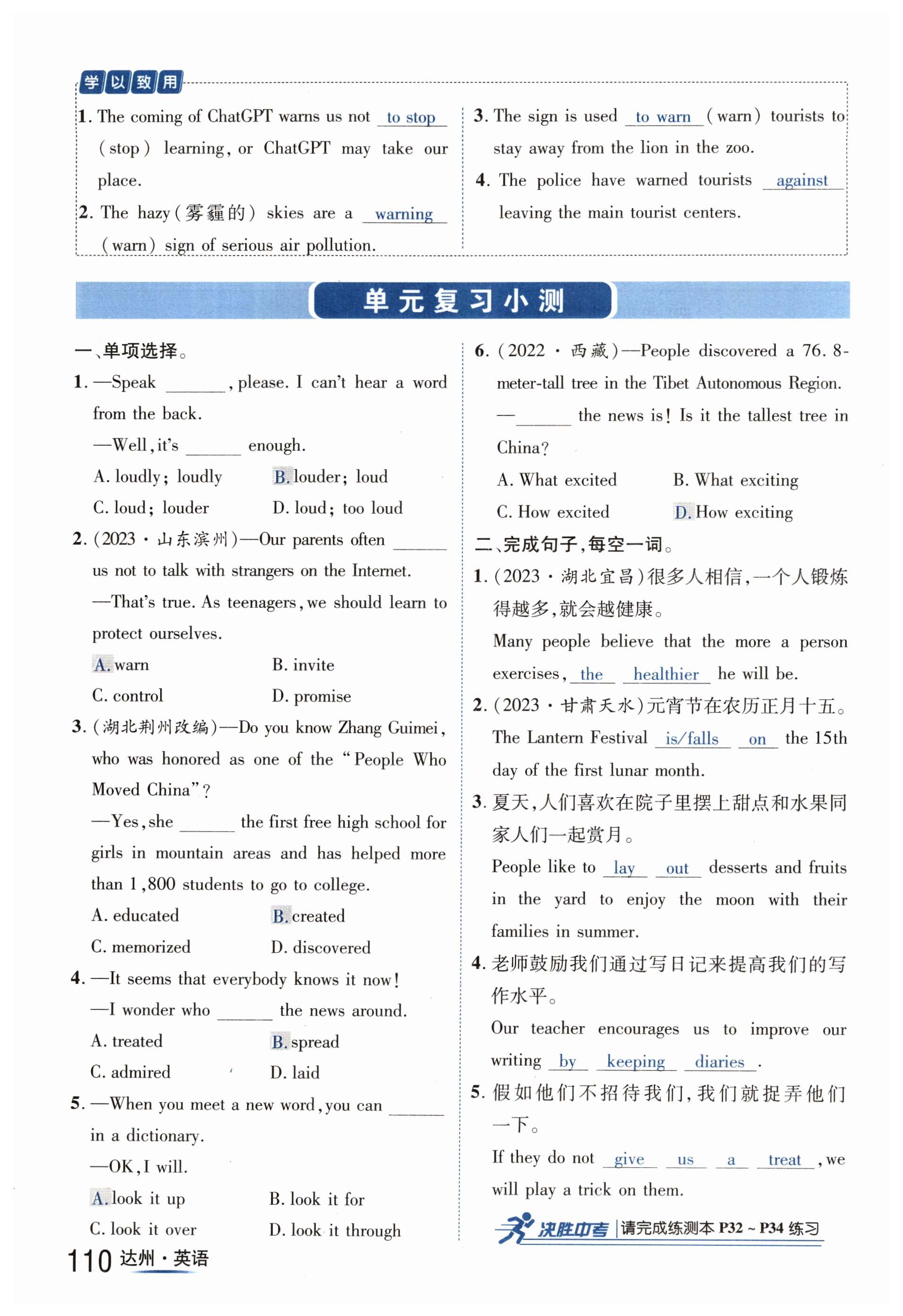 注:目前有些书本章节名称可能整理的还不是很完善,但都是按照顺序排列的,请同学们按照顺序仔细查找。练习册 2024年国华考试中考总动员英语达州专版 答案主要是用来给同学们做完题方便对答案用的,请勿直接抄袭。