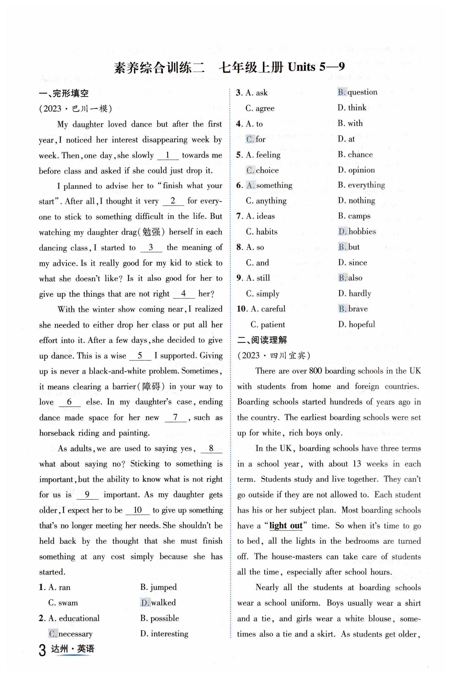 注:目前有些书本章节名称可能整理的还不是很完善,但都是按照顺序排列的,请同学们按照顺序仔细查找。练习册 2024年国华考试中考总动员英语达州专版 答案主要是用来给同学们做完题方便对答案用的,请勿直接抄袭。
