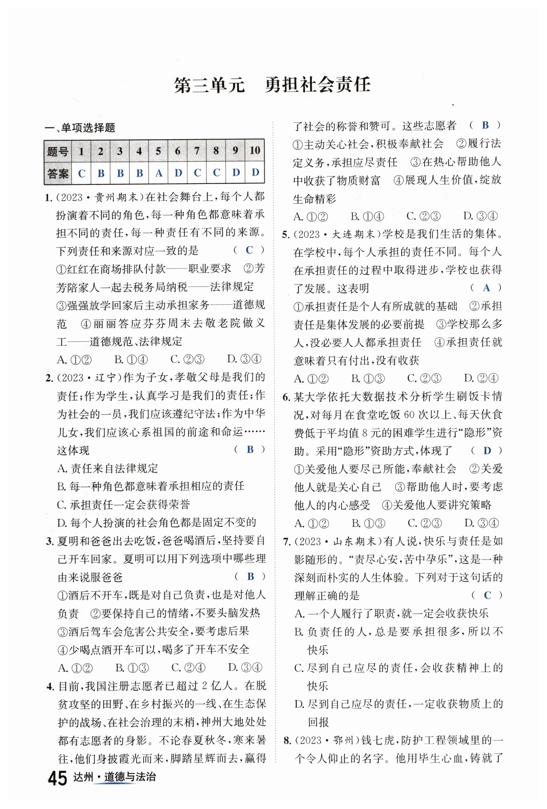注:目前有些书本章节名称可能整理的还不是很完善,但都是按照顺序排列的,请同学们按照顺序仔细查找。练习册 2024年国华考试中考总动员道德与法治达州专版 答案主要是用来给同学们做完题方便对答案用的,请勿直接抄袭。