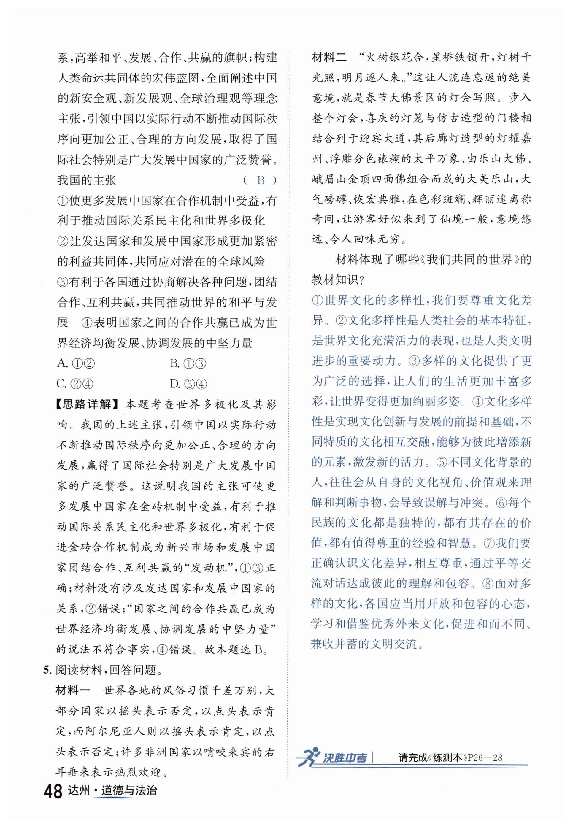 注:目前有些书本章节名称可能整理的还不是很完善,但都是按照顺序排列的,请同学们按照顺序仔细查找。练习册 2024年国华考试中考总动员道德与法治达州专版 答案主要是用来给同学们做完题方便对答案用的,请勿直接抄袭。