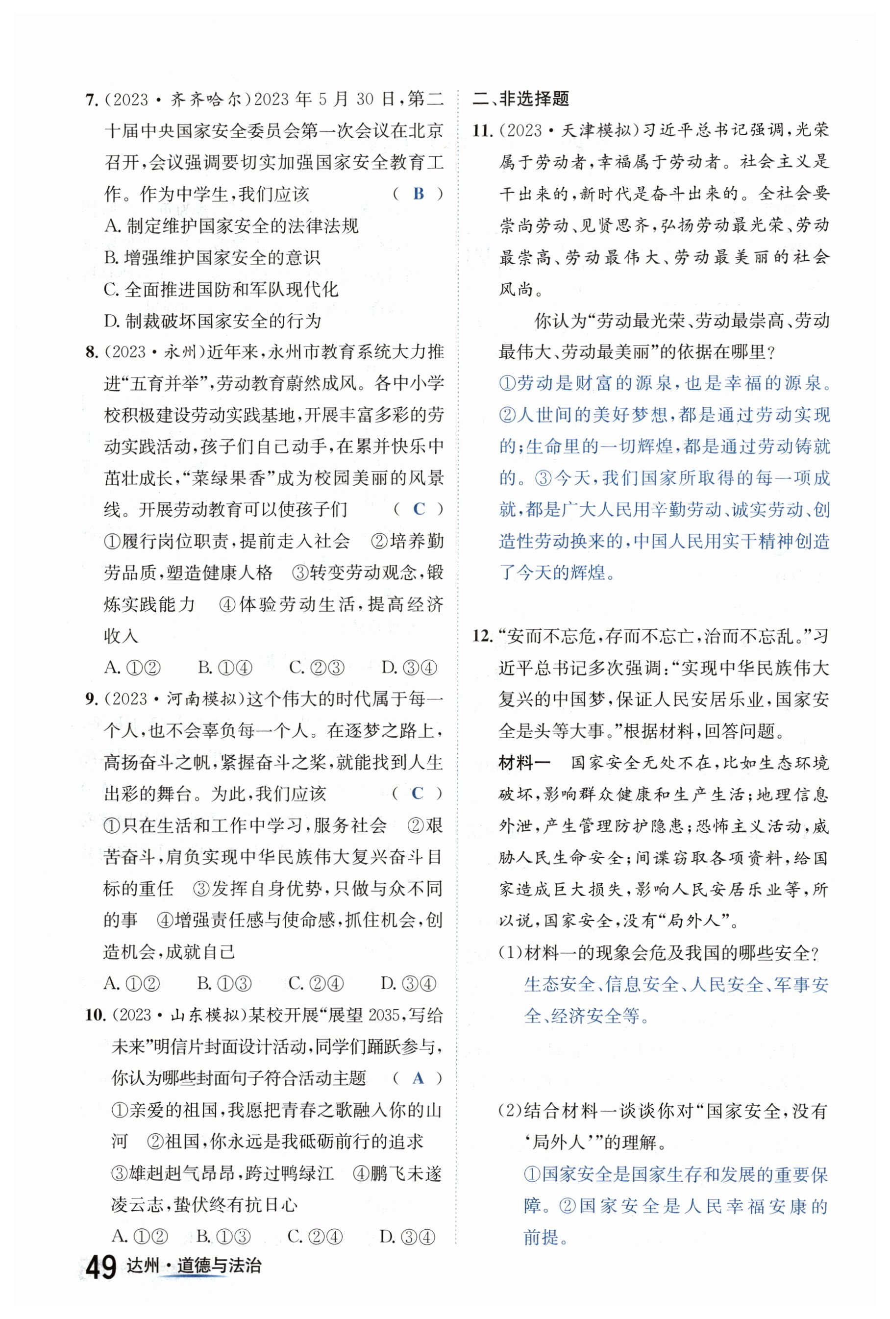 注:目前有些书本章节名称可能整理的还不是很完善,但都是按照顺序排列的,请同学们按照顺序仔细查找。练习册 2024年国华考试中考总动员道德与法治达州专版 答案主要是用来给同学们做完题方便对答案用的,请勿直接抄袭。