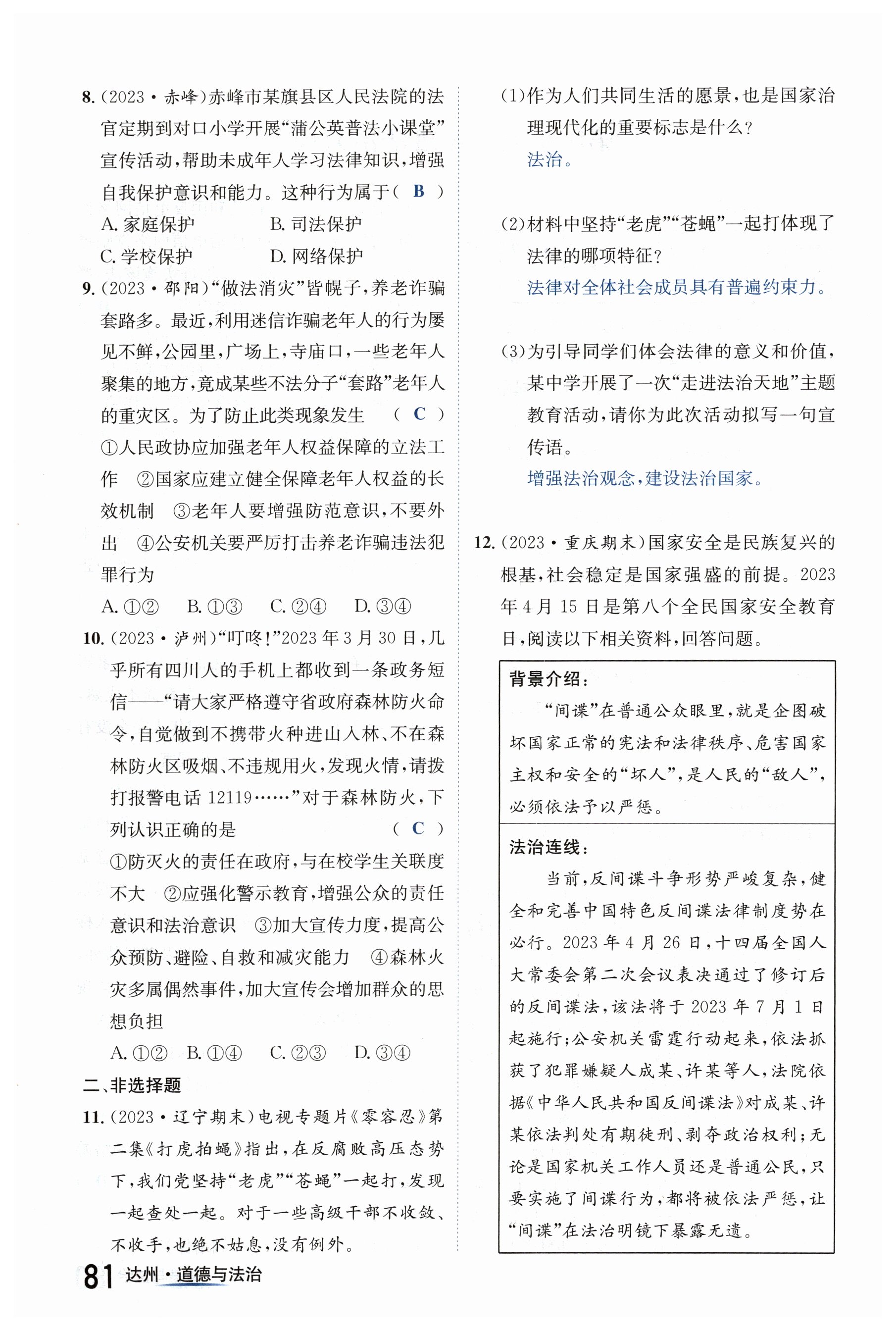 注:目前有些书本章节名称可能整理的还不是很完善,但都是按照顺序排列的,请同学们按照顺序仔细查找。练习册 2024年国华考试中考总动员道德与法治达州专版 答案主要是用来给同学们做完题方便对答案用的,请勿直接抄袭。